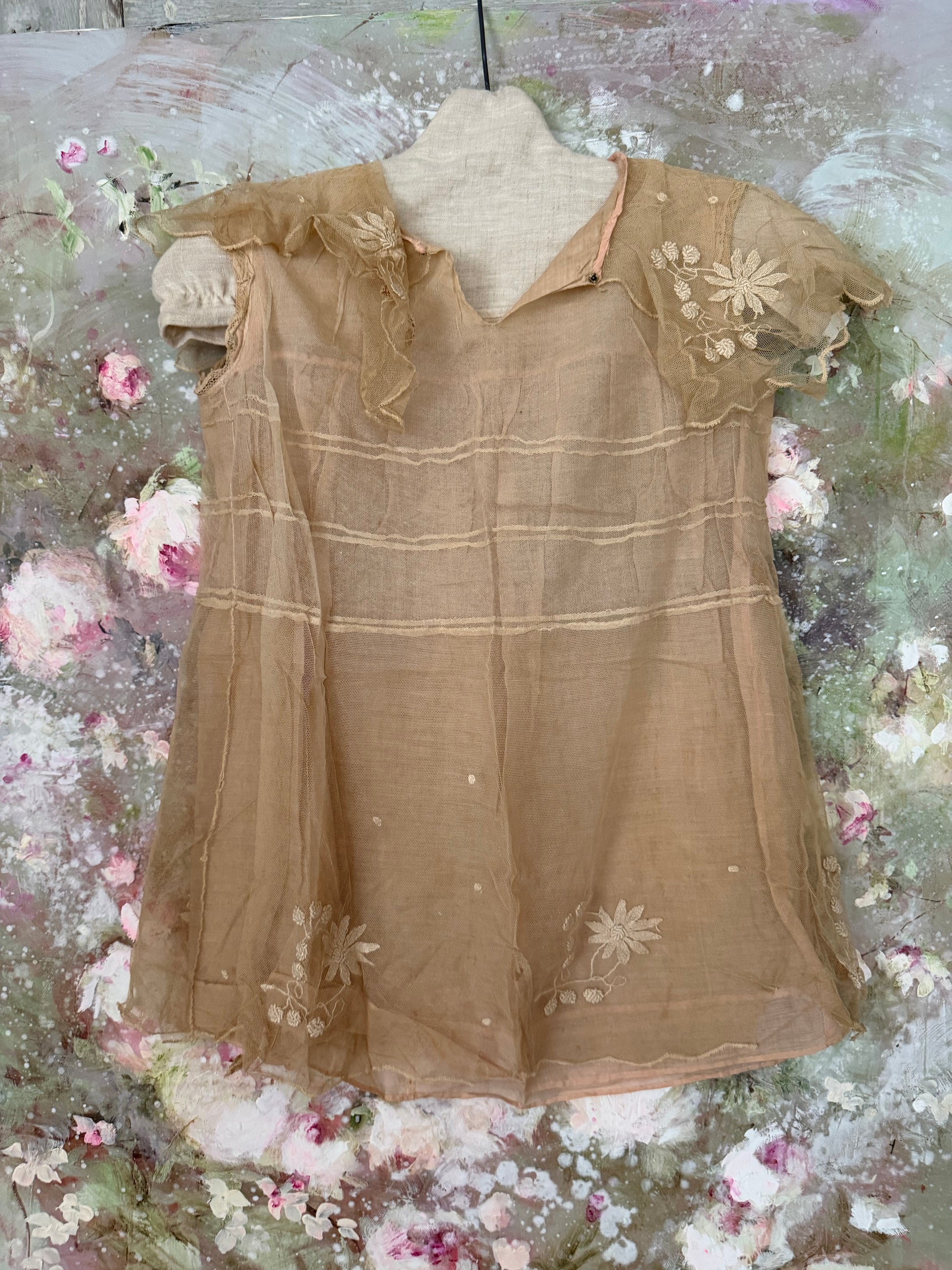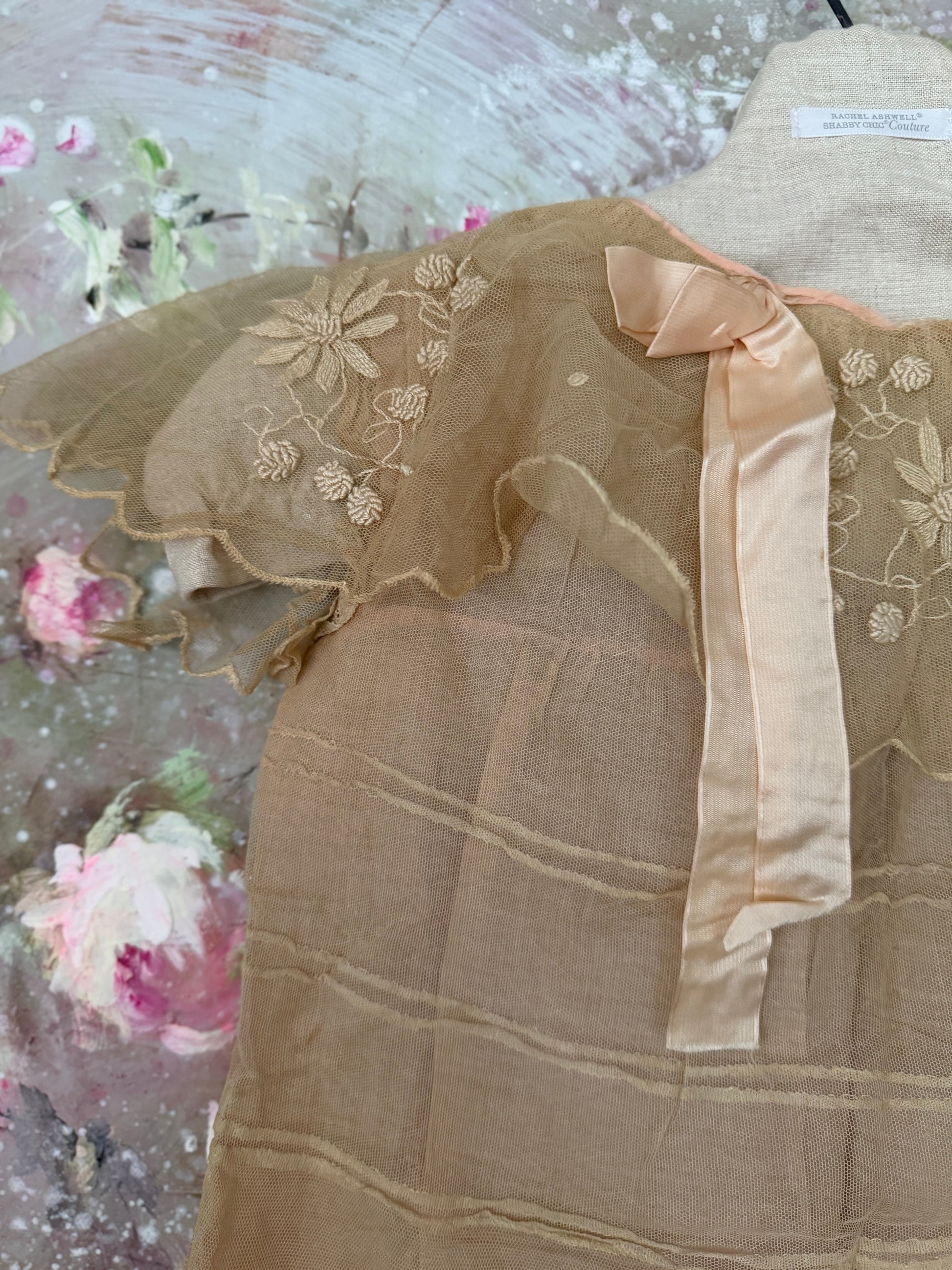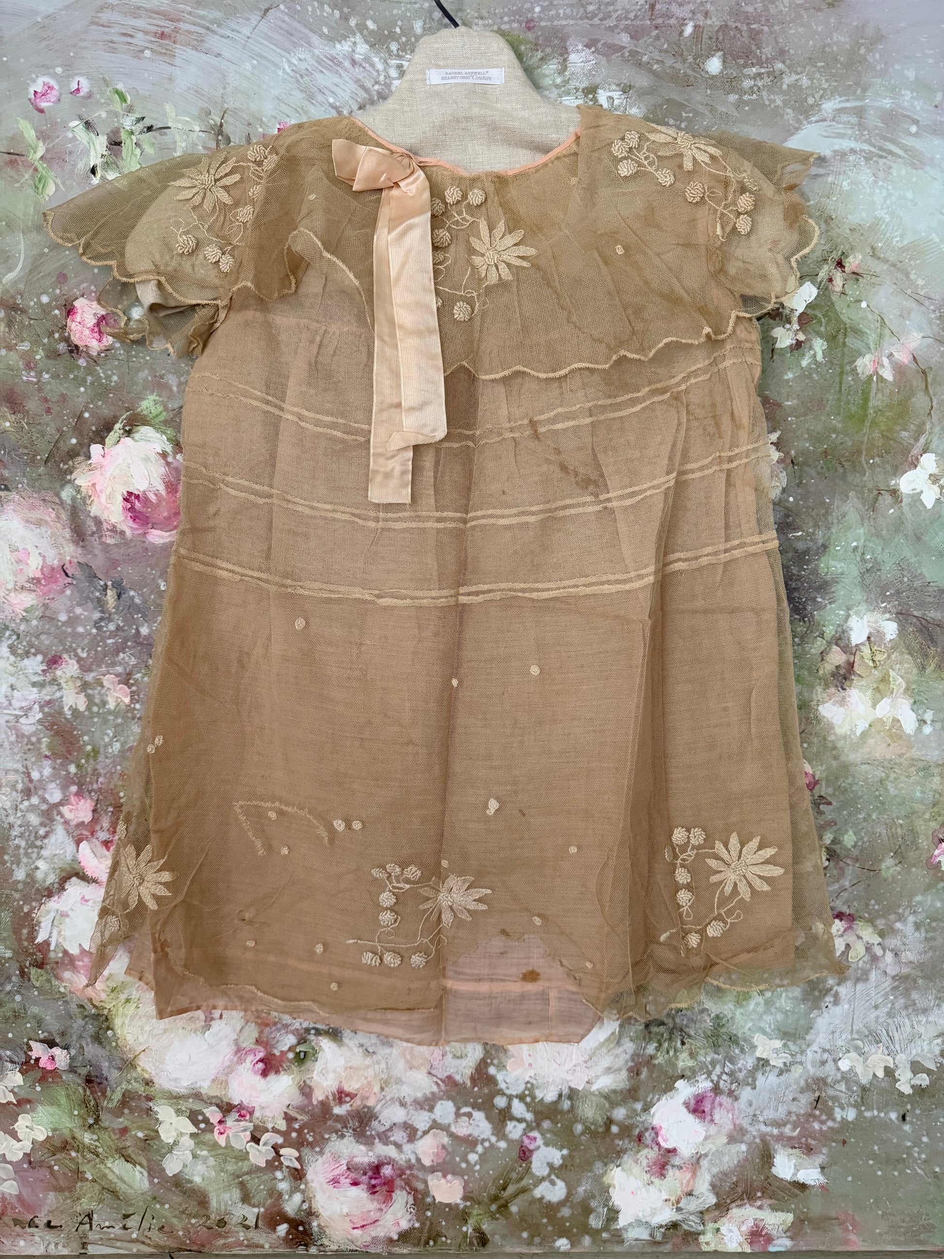 STORY SALE Antique Girls Lace Dress Pink Silk Ribbon