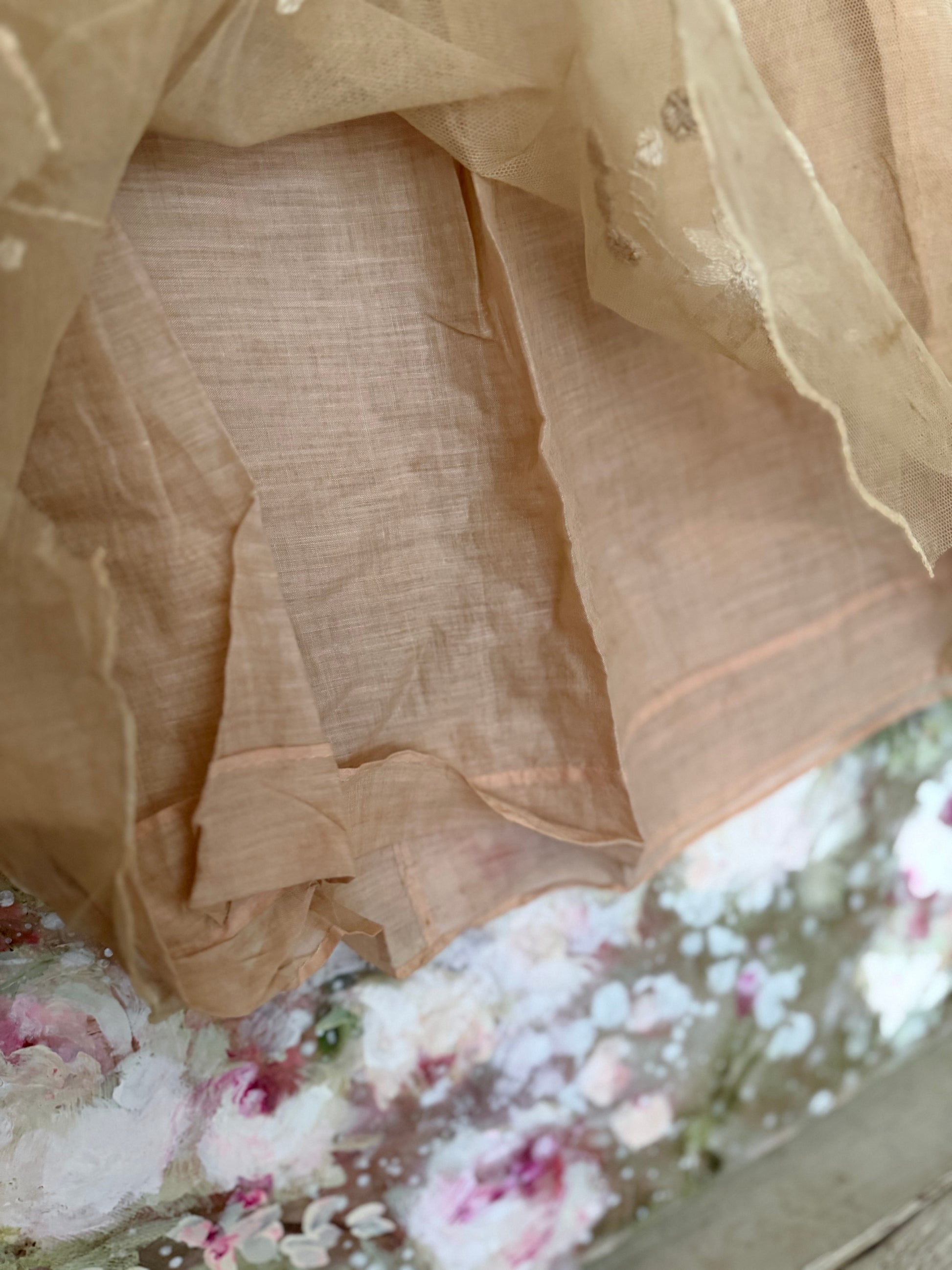 This piece is not without flaws, some splits to silk and lace at the front collar, edge rips to lace , general age wear