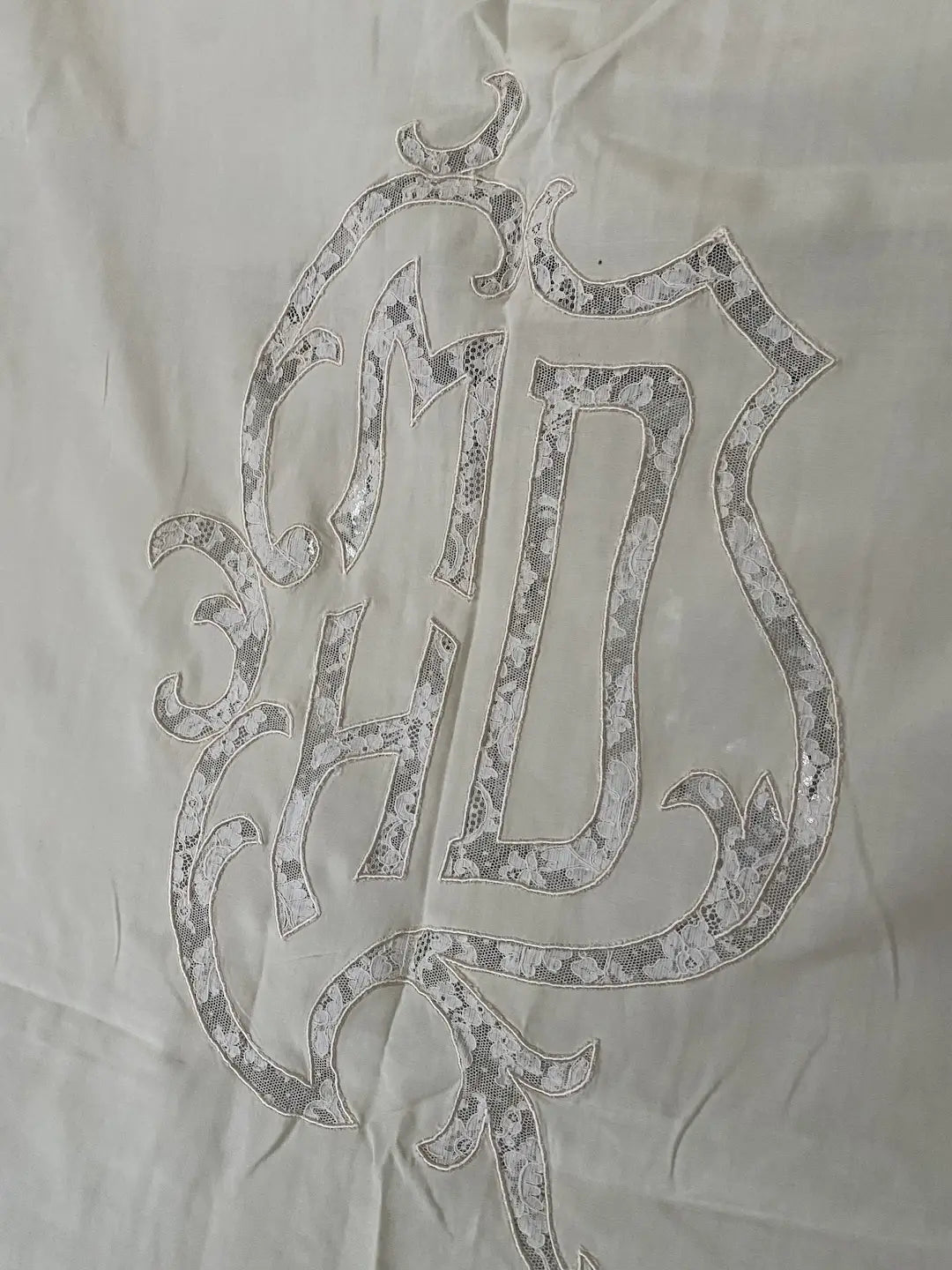 Vintage c1940 Bed Sheet Coverlet Lace Monogram