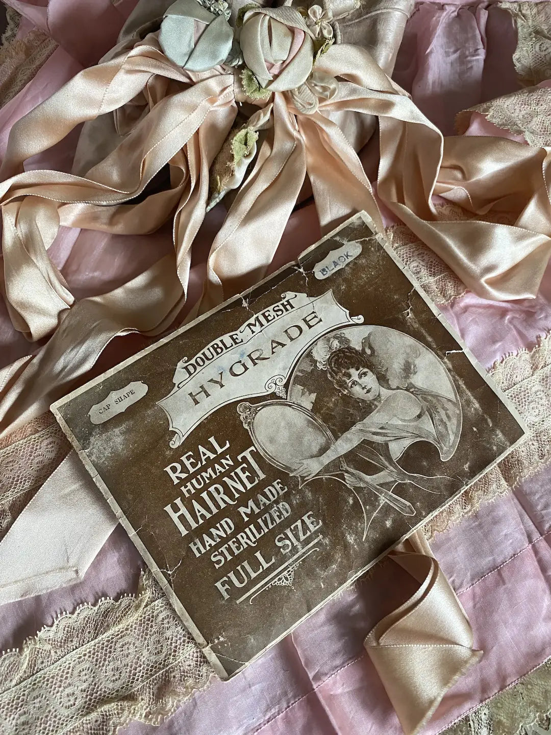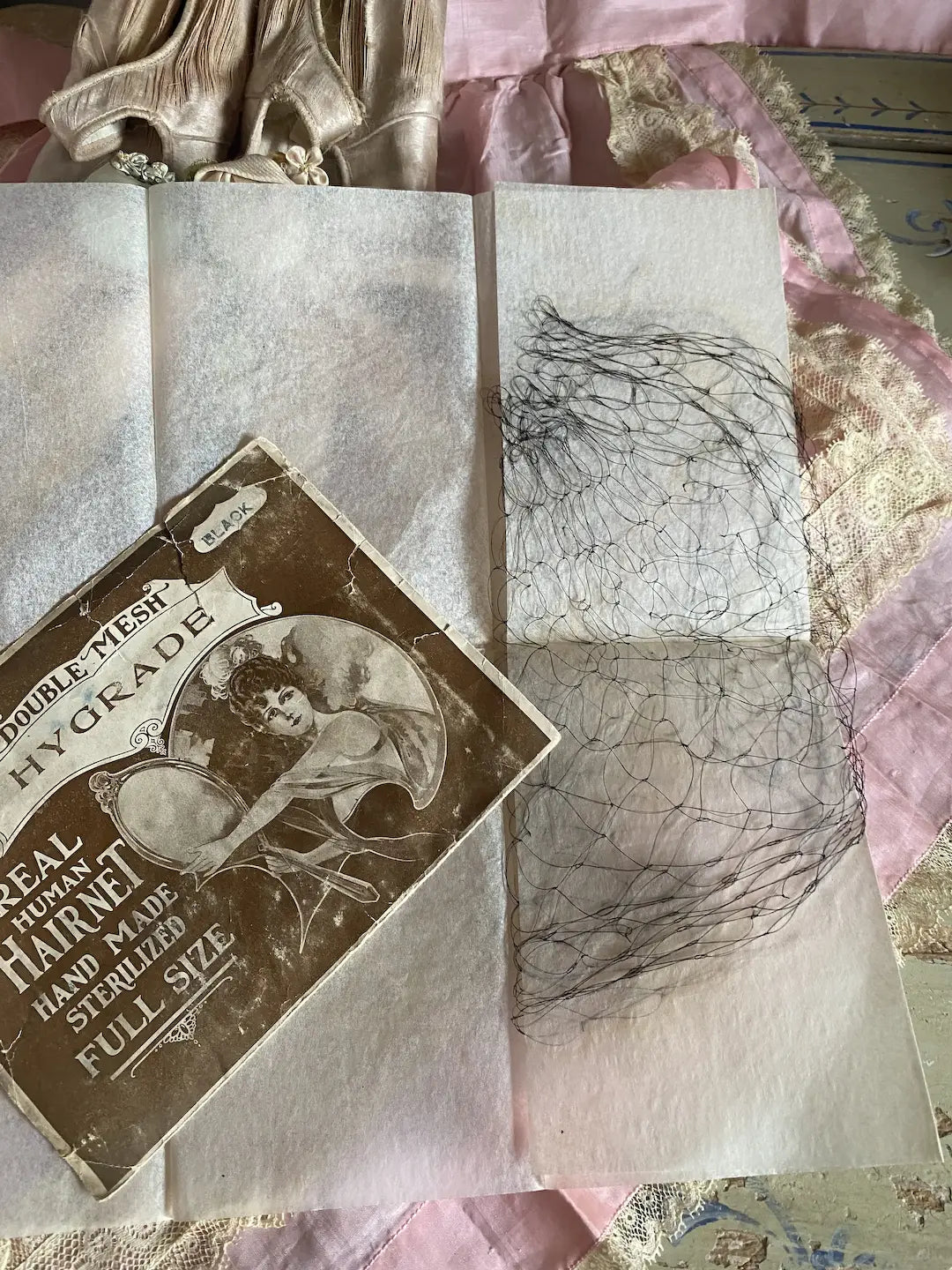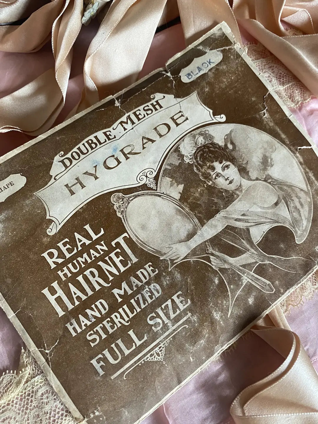 Antique Edwardian Human Hair Net Black Cap Cloche Style Original Packaging