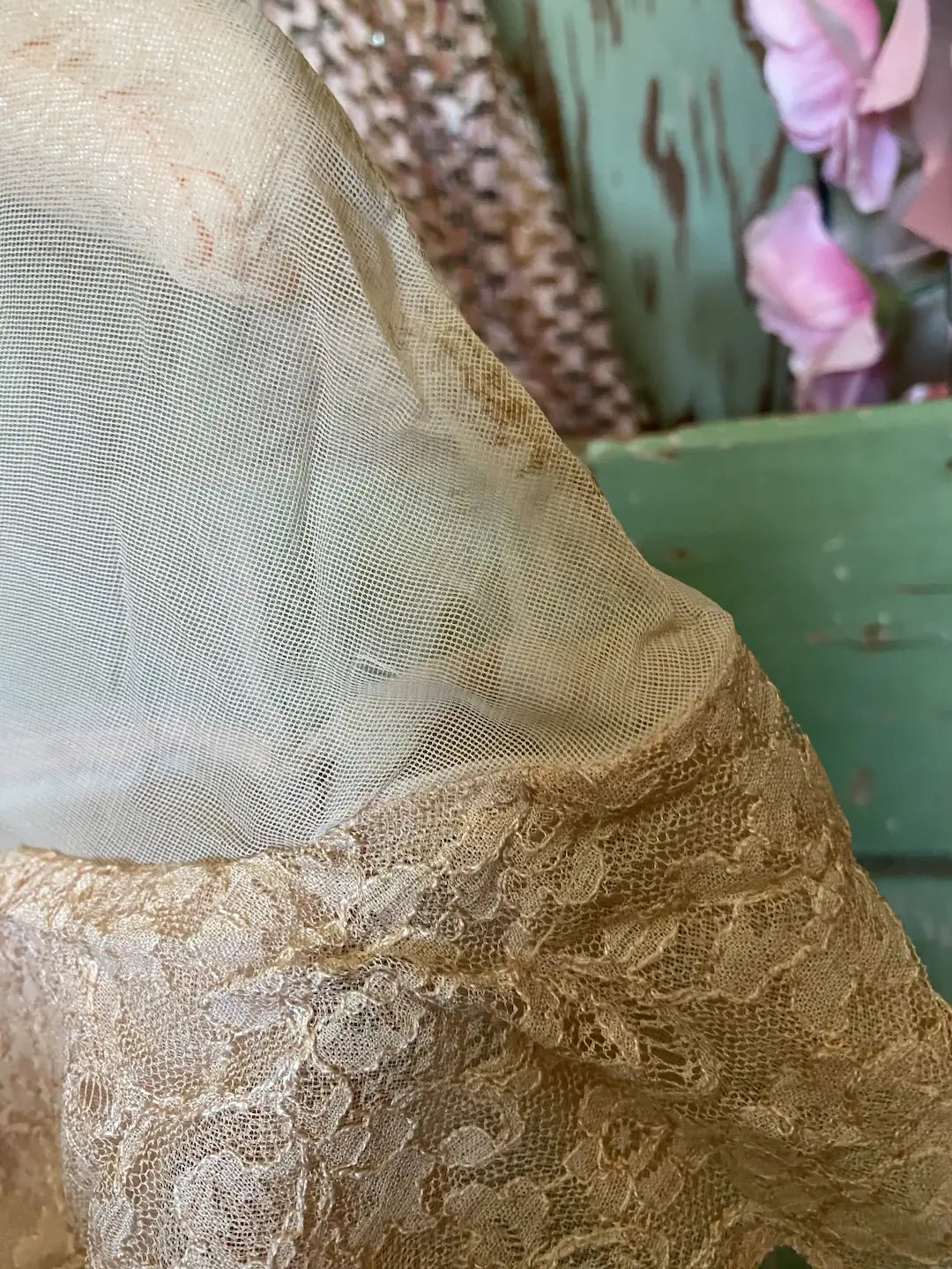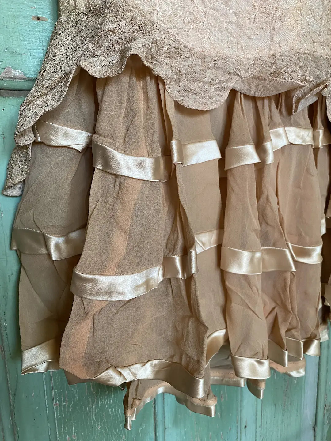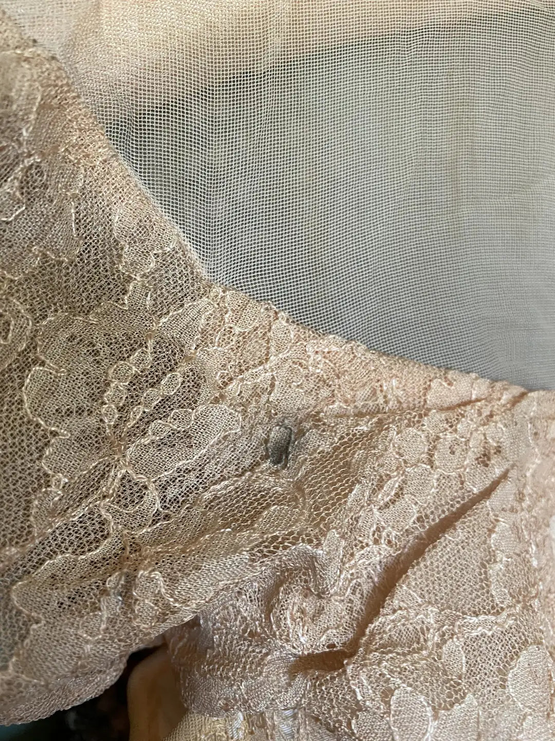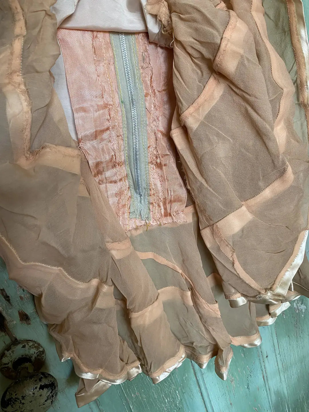 Vintage Dance Costume Dress Peach Silk Scalloped Collar Lace Nordic Chic