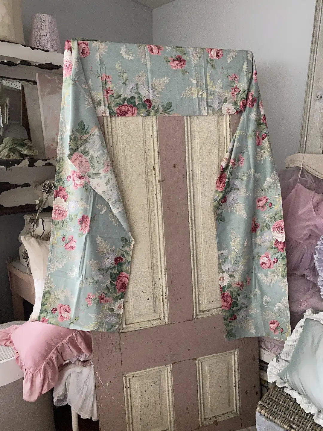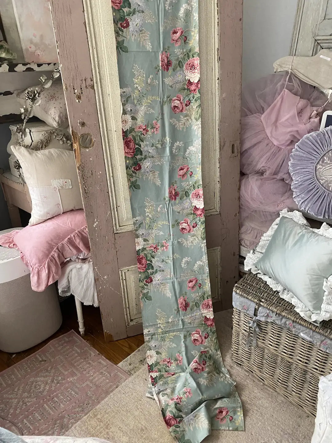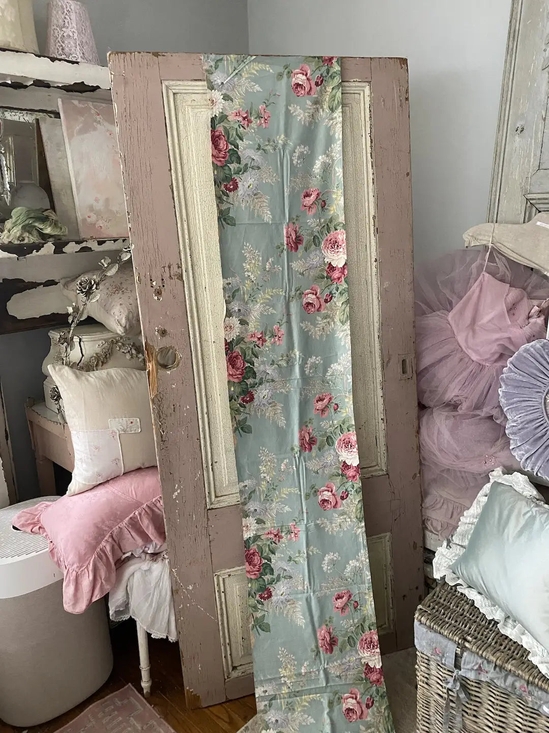 BEST Vintage Shabby Chic Fabric Blue Polished Cotton Cabbage Roses To Make Bow