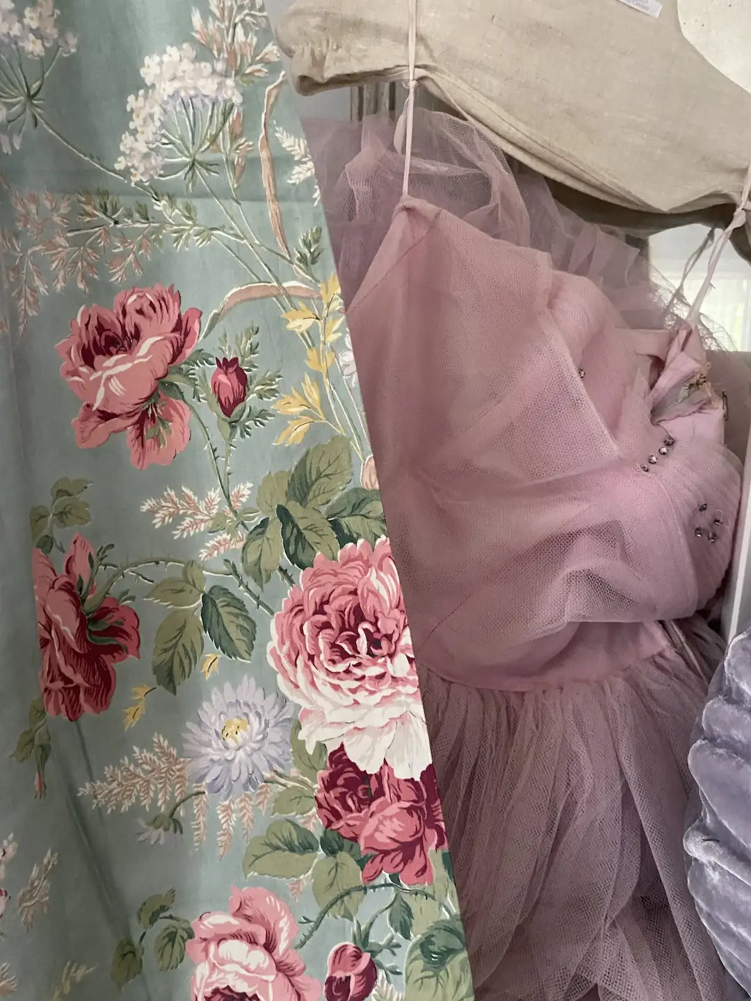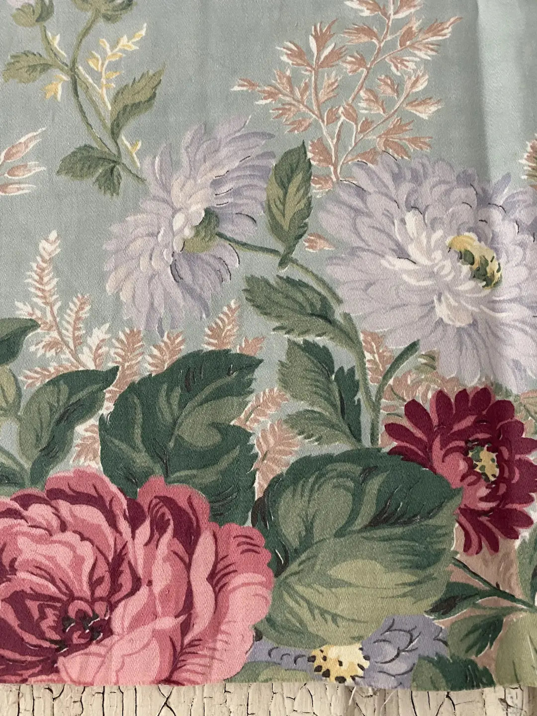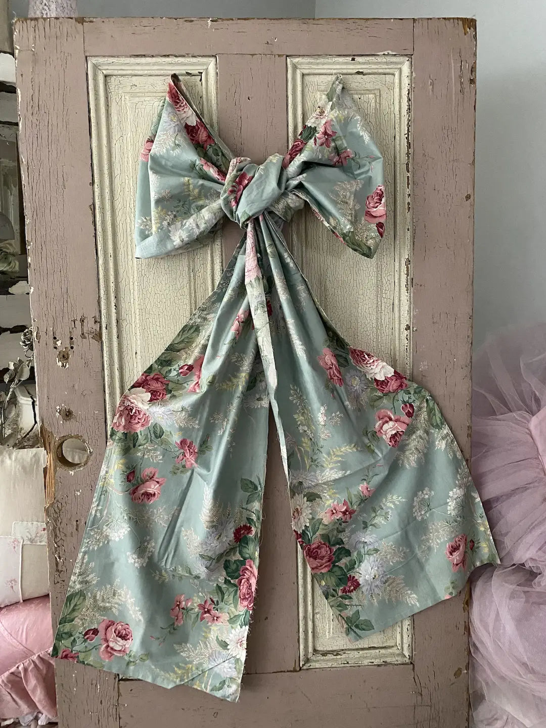 BEST Vintage Shabby Chic Fabric Blue Polished Cotton Cabbage Roses To Make Bow