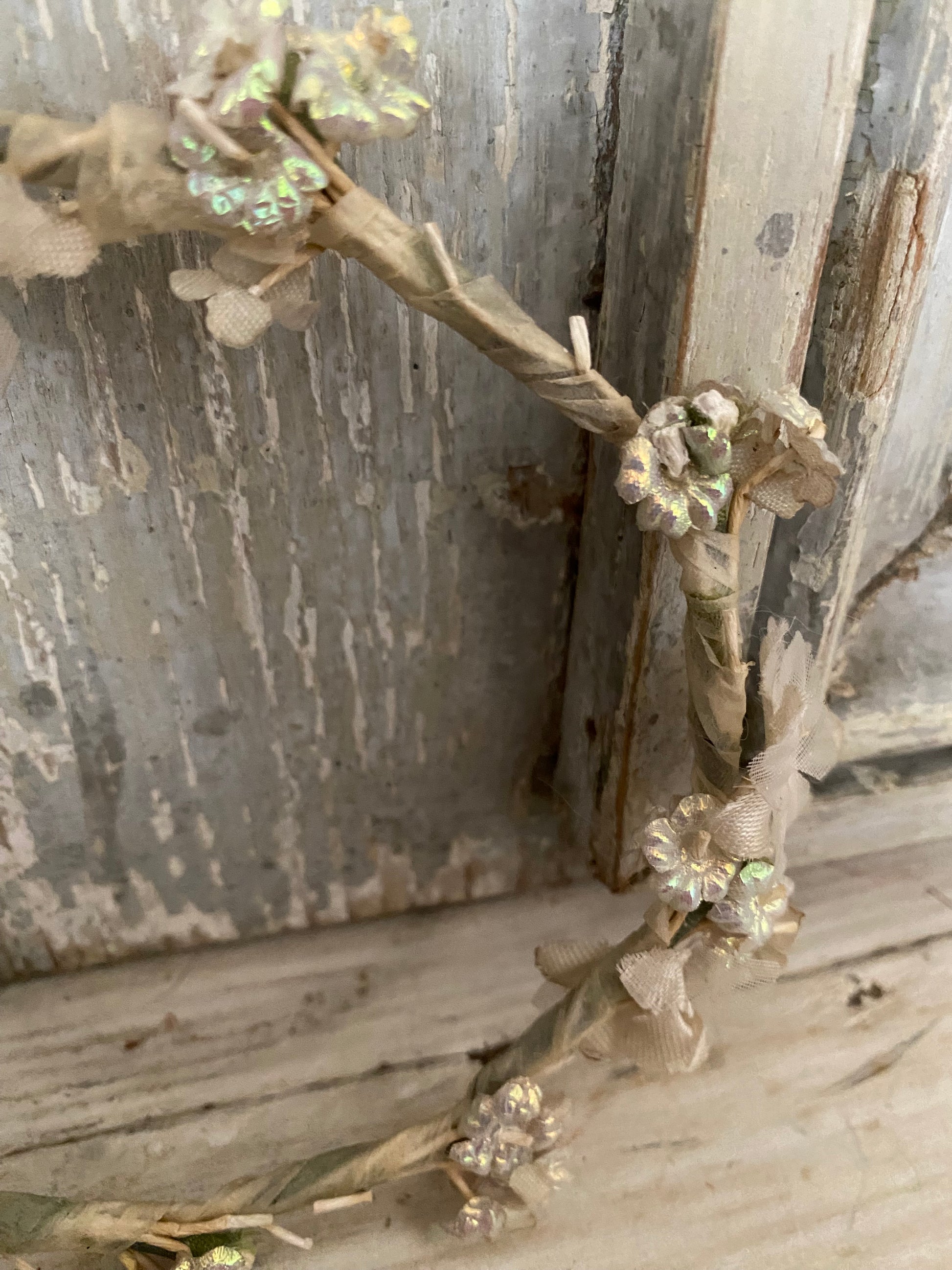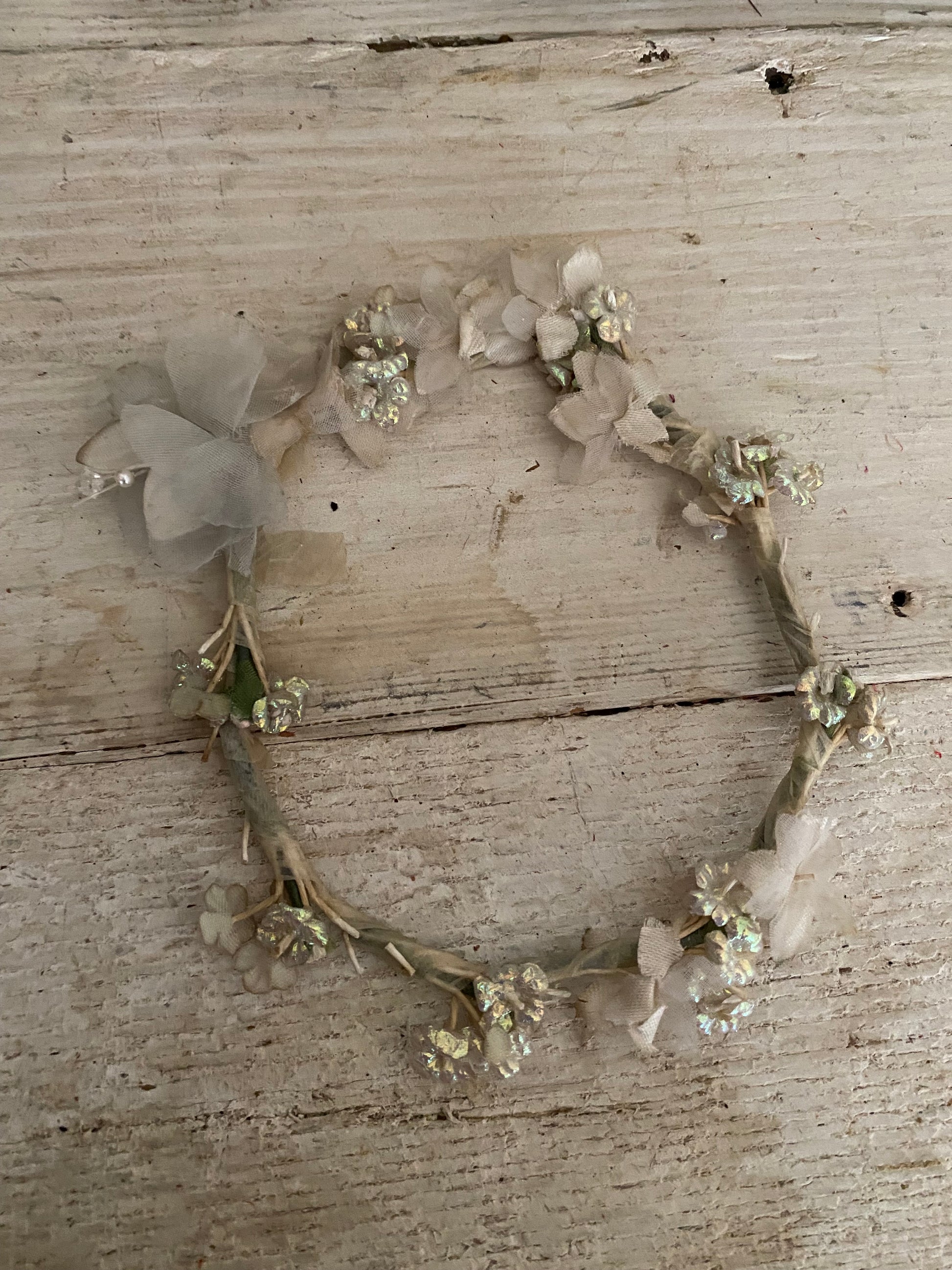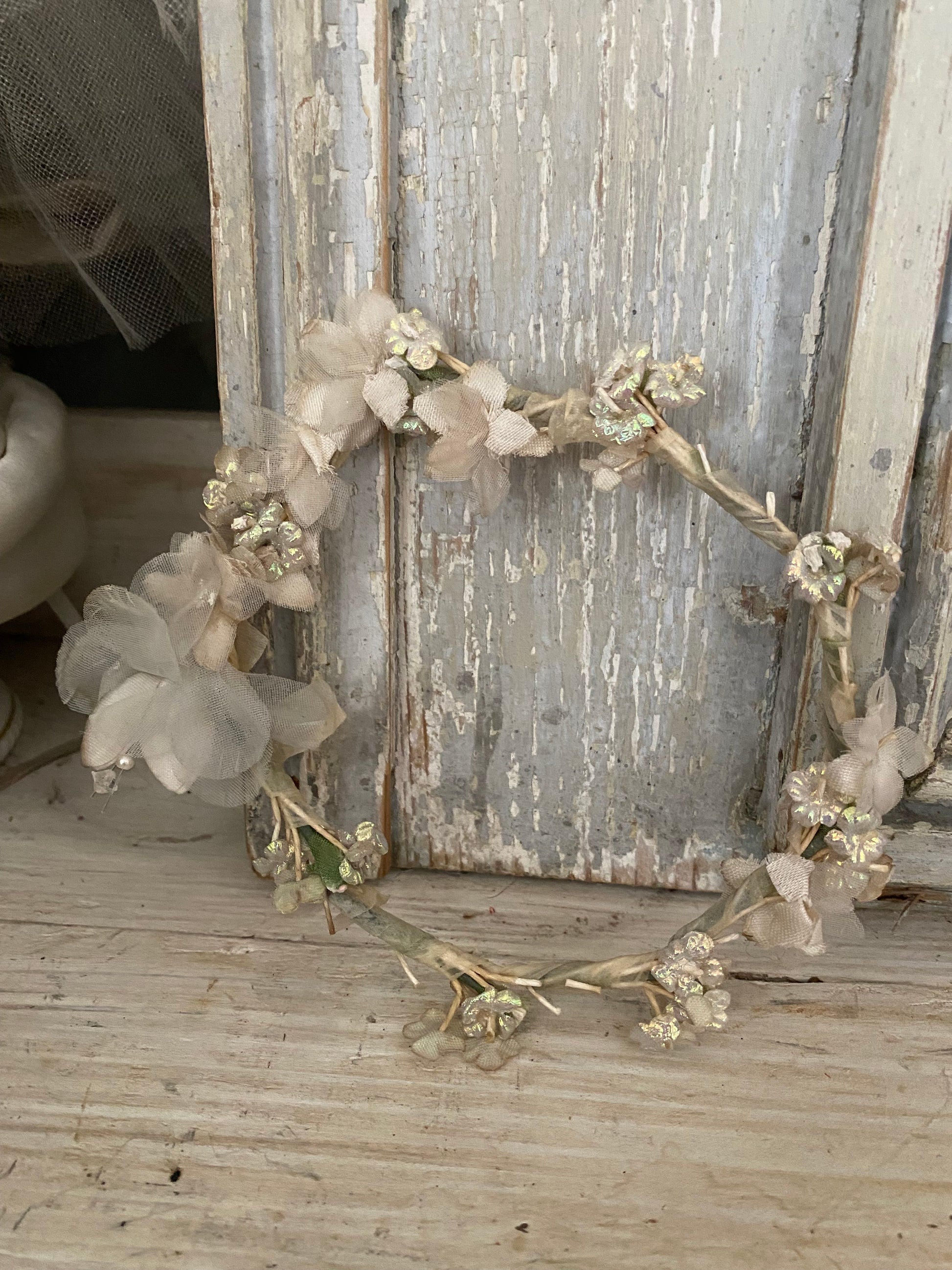 Antique Iridescent Blue Petite French Flower Crown