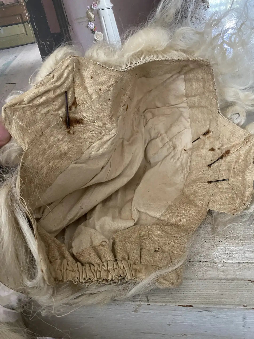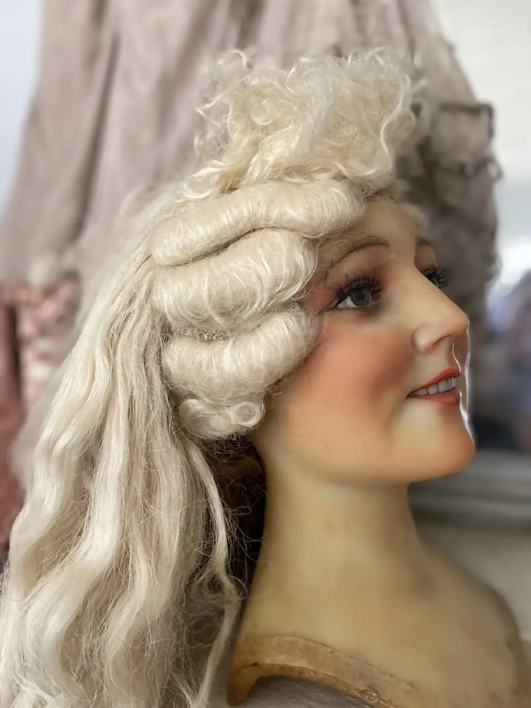 The wig is antique and shows age related wear, just as photographed by Nina for a Divine Mess