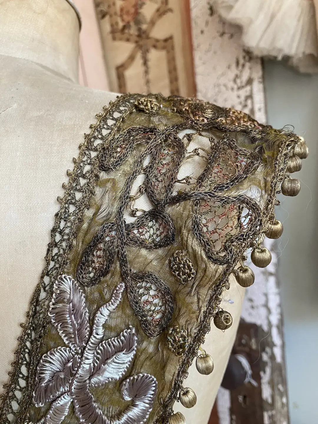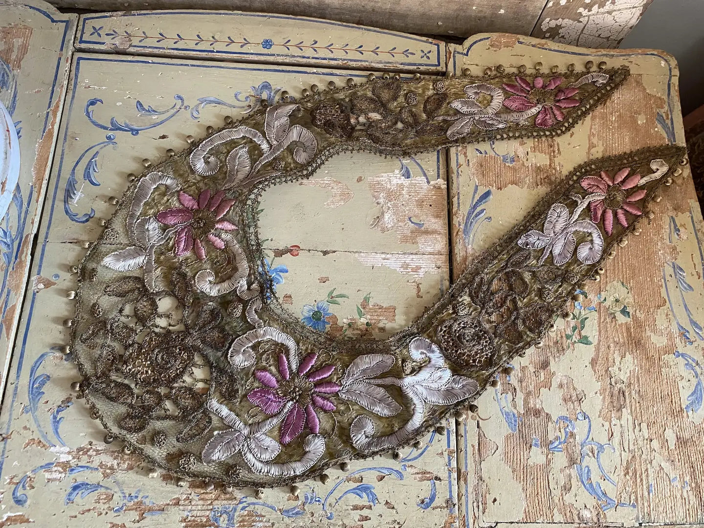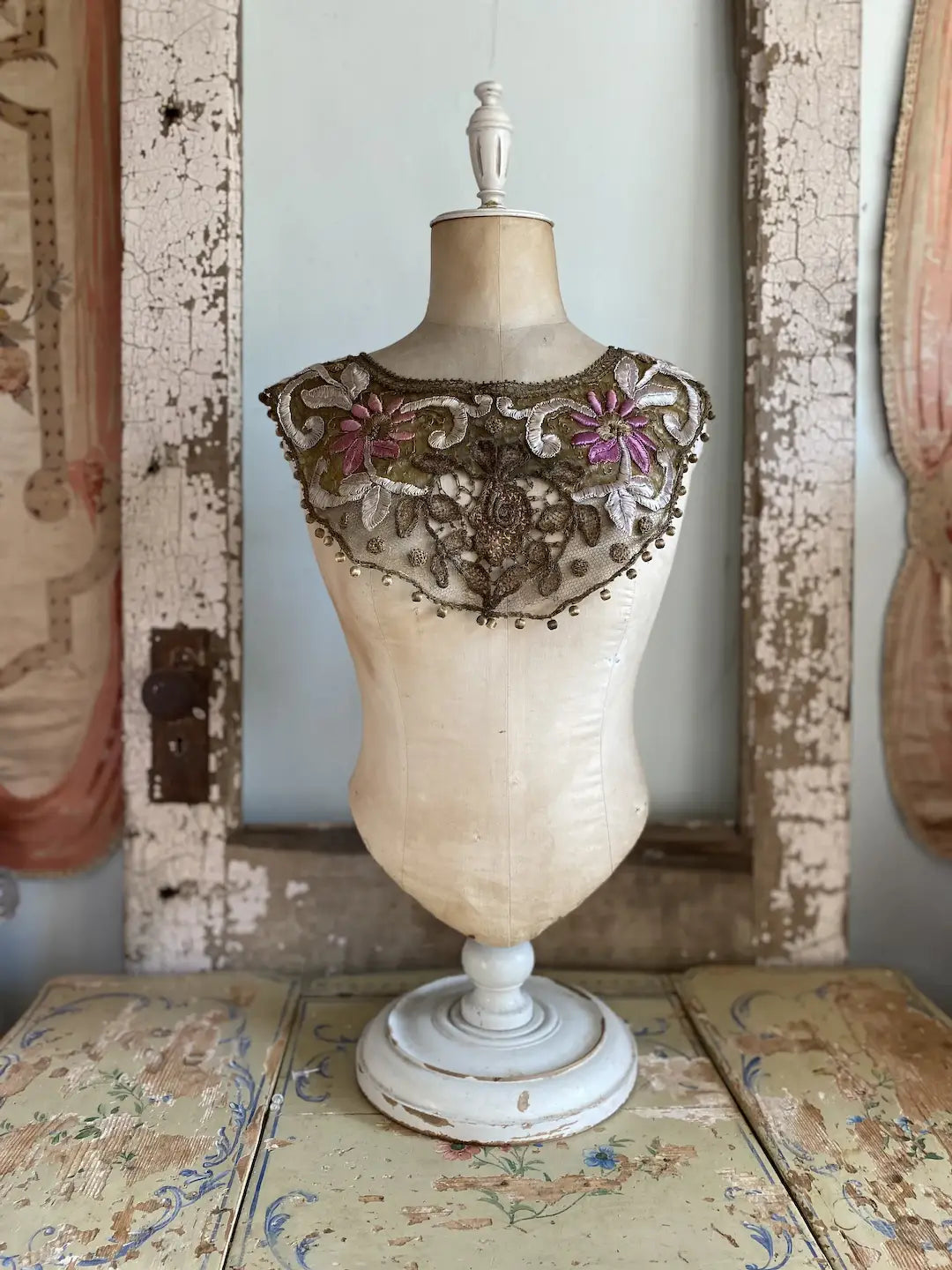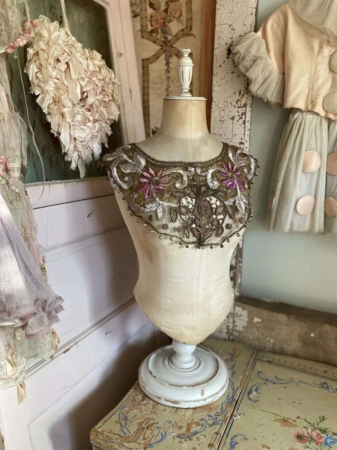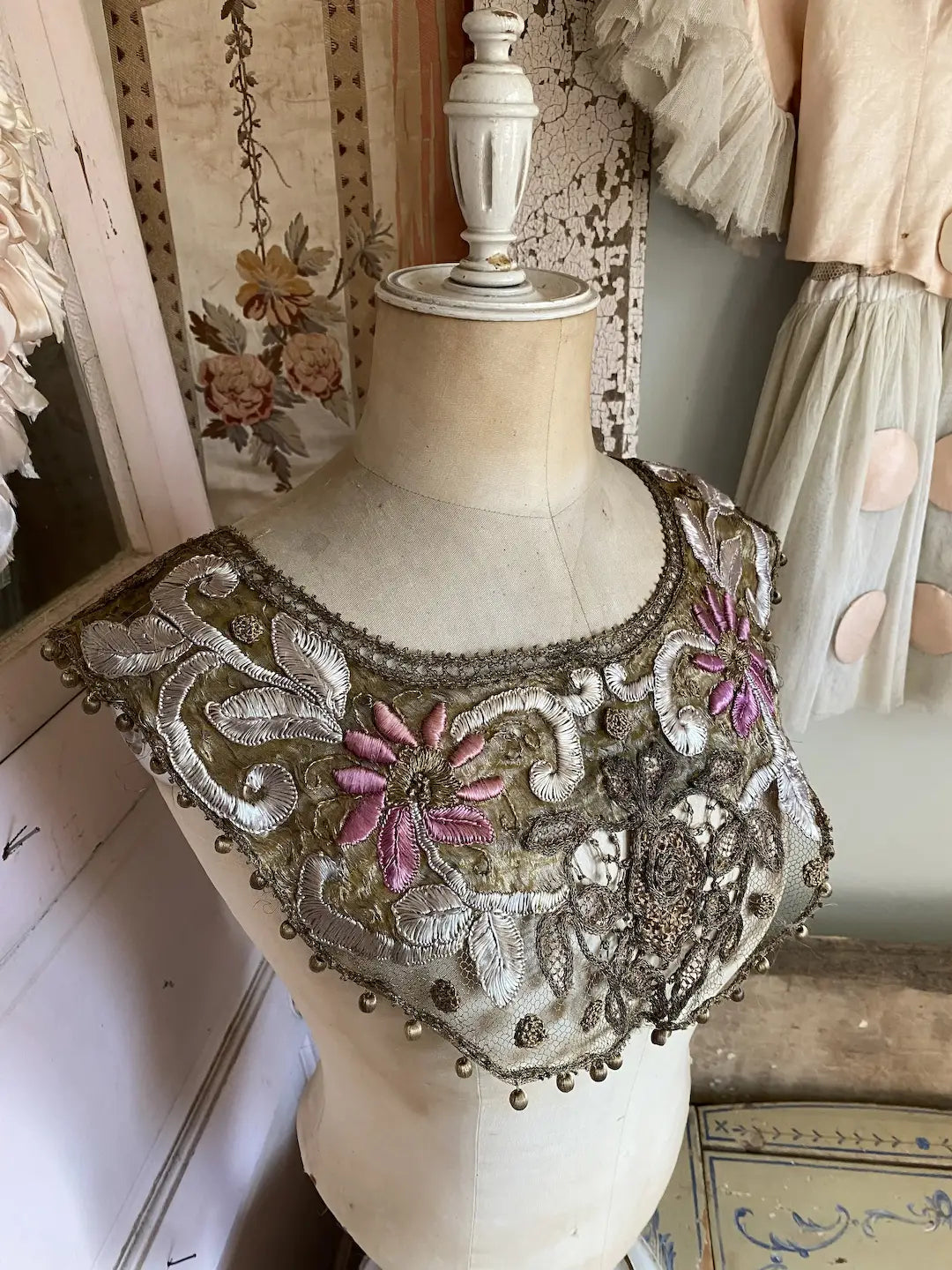 Antique Museum Piece 1920s Collar Gold Lame Lace Silk Embroidered Pink
