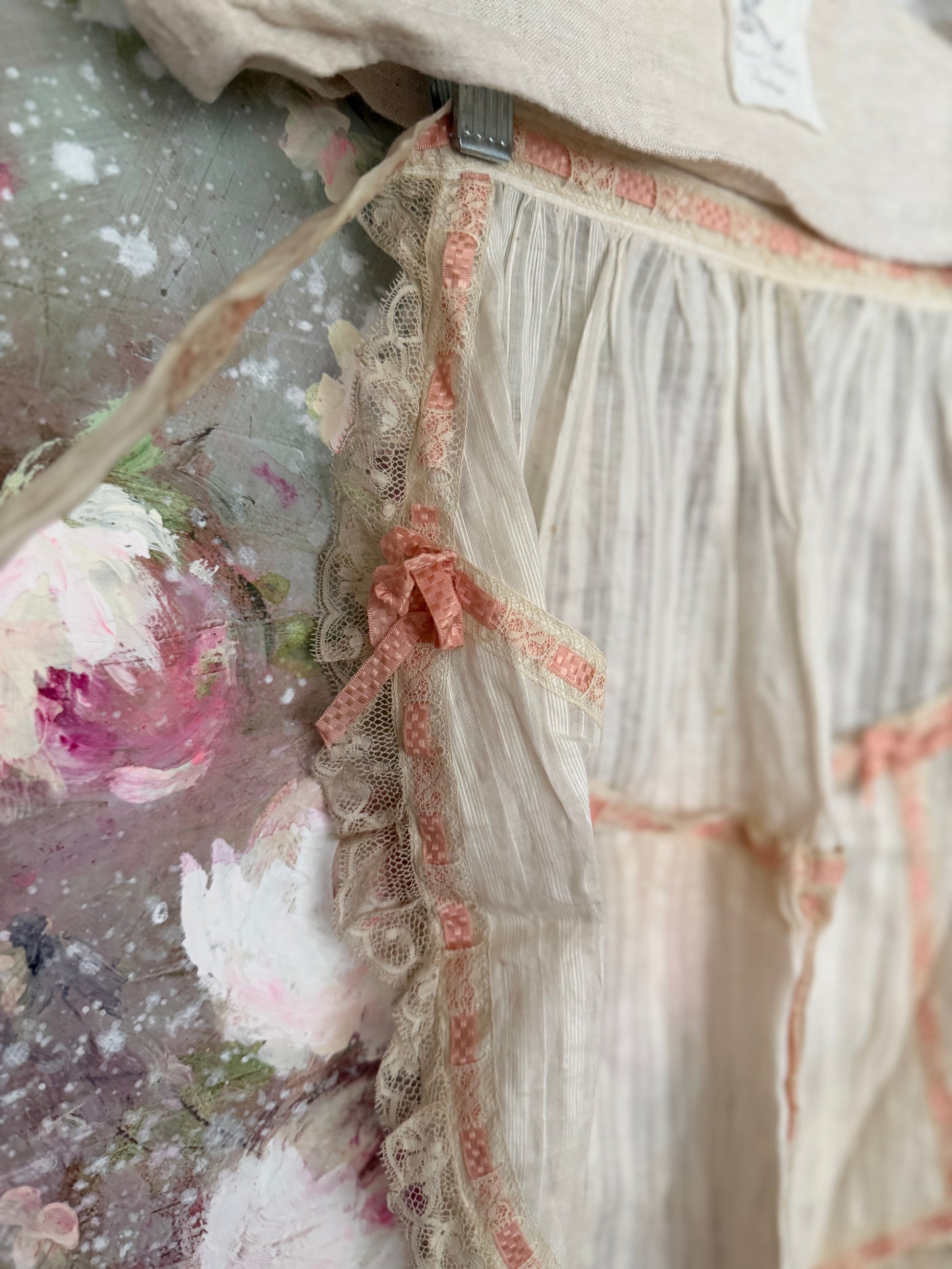 Antique Apron Skirt Pink Silk Ribbon Bows Lace
