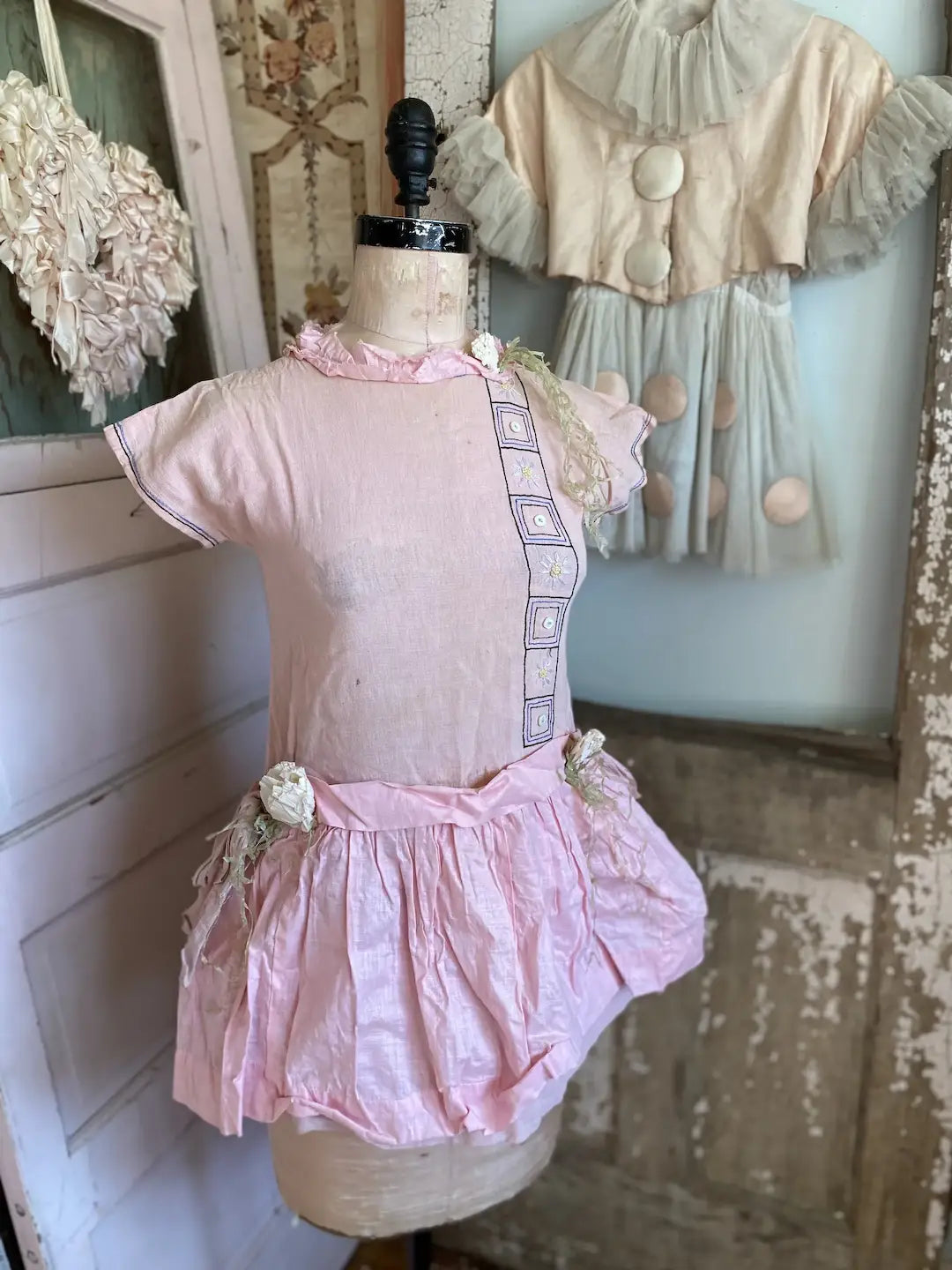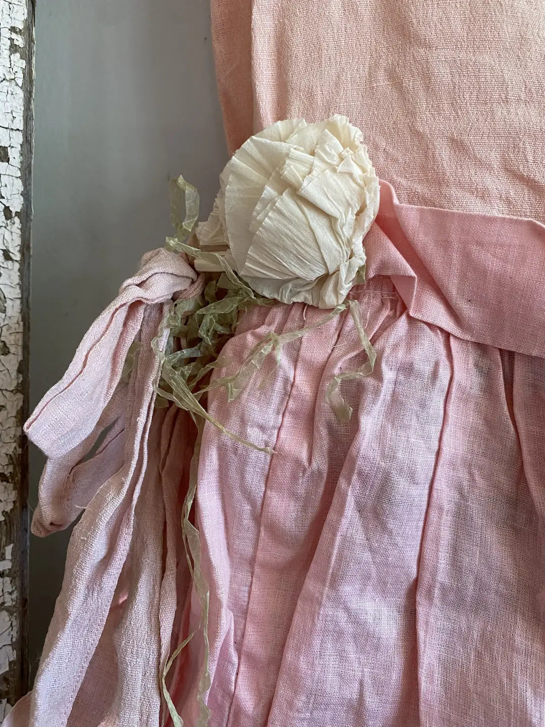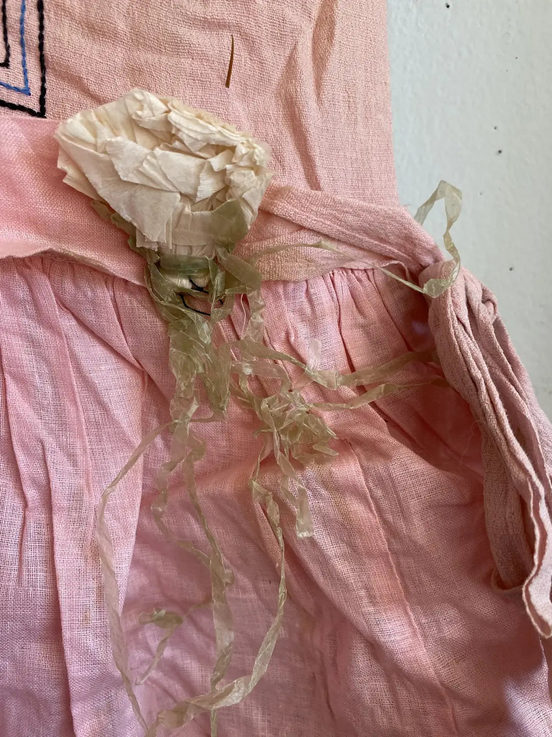 Vintage Girls Costume Pink Crepe Paper Flowers Shabby Nordic Chic