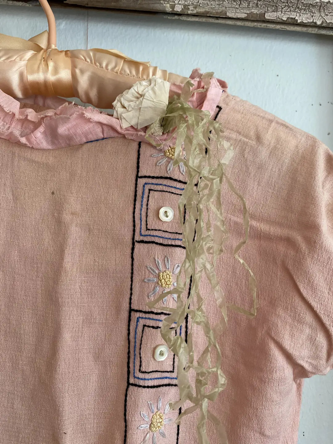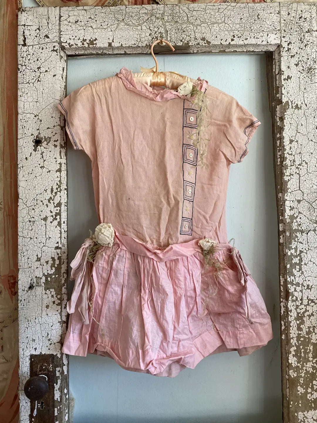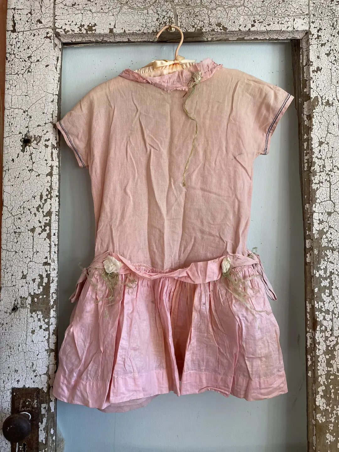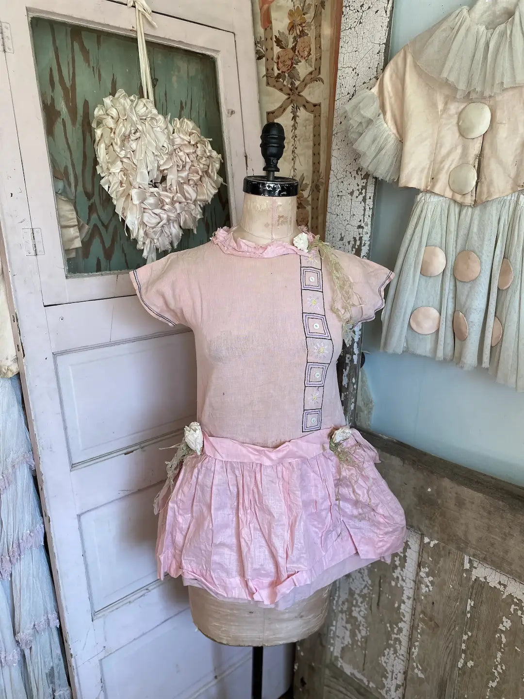 Vintage Girls Costume Pink Crepe Paper Flowers Shabby Nordic Chic