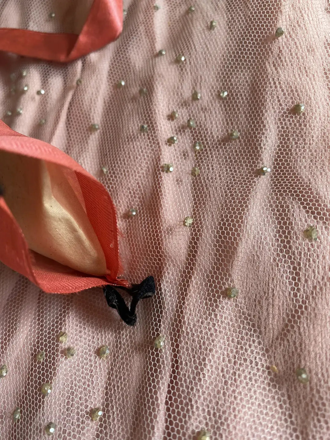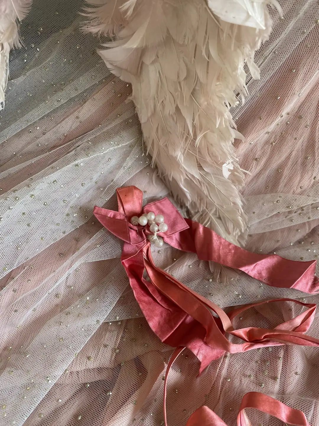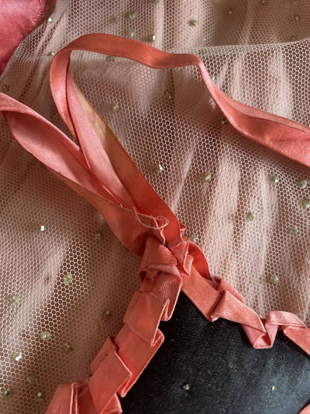 2 Antique Pin Cushion Sachets Pink Silk Ribbons Bow Pearls
