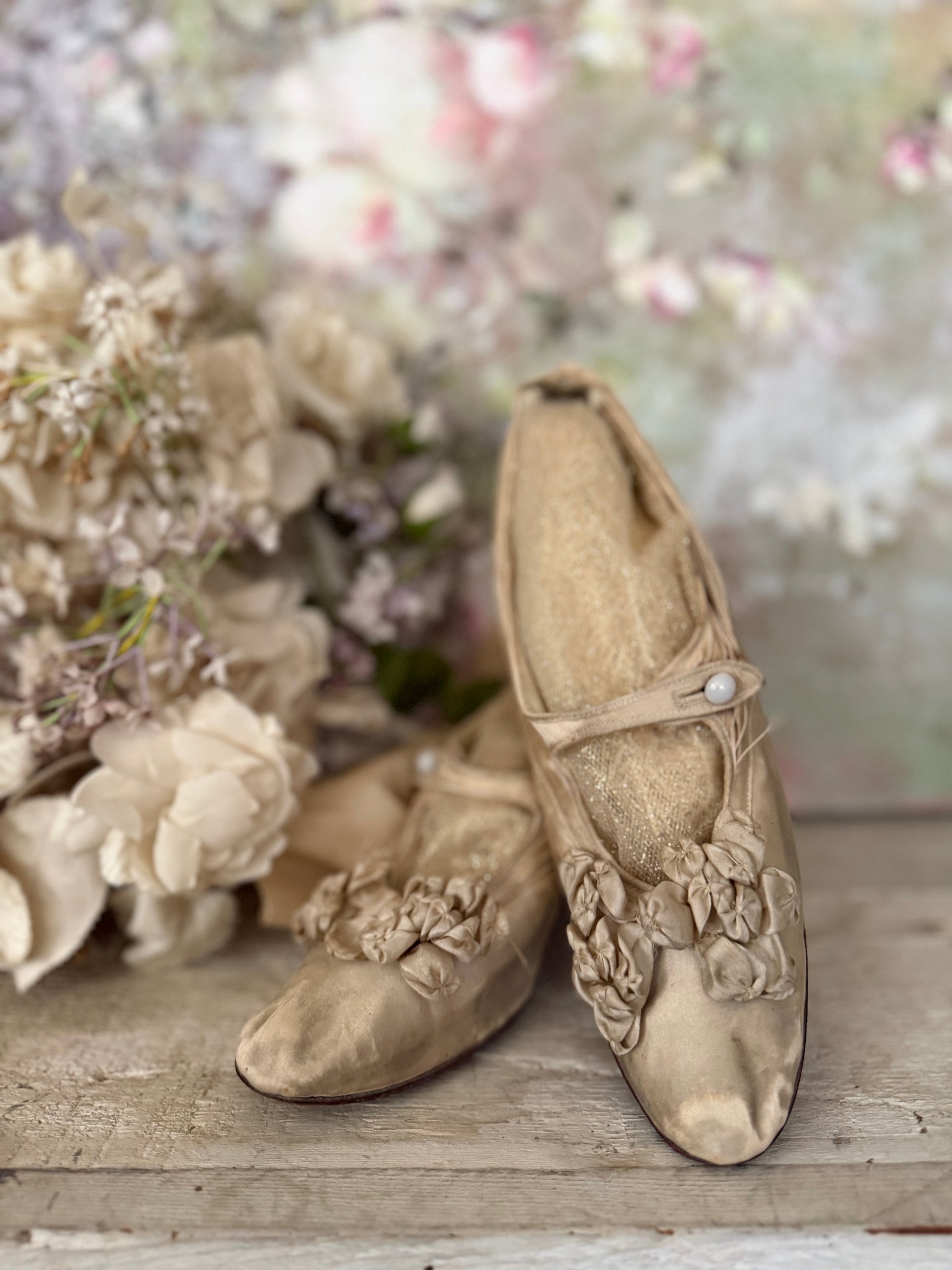 Antique Silk Shoes With Ribbonwork Rosettes