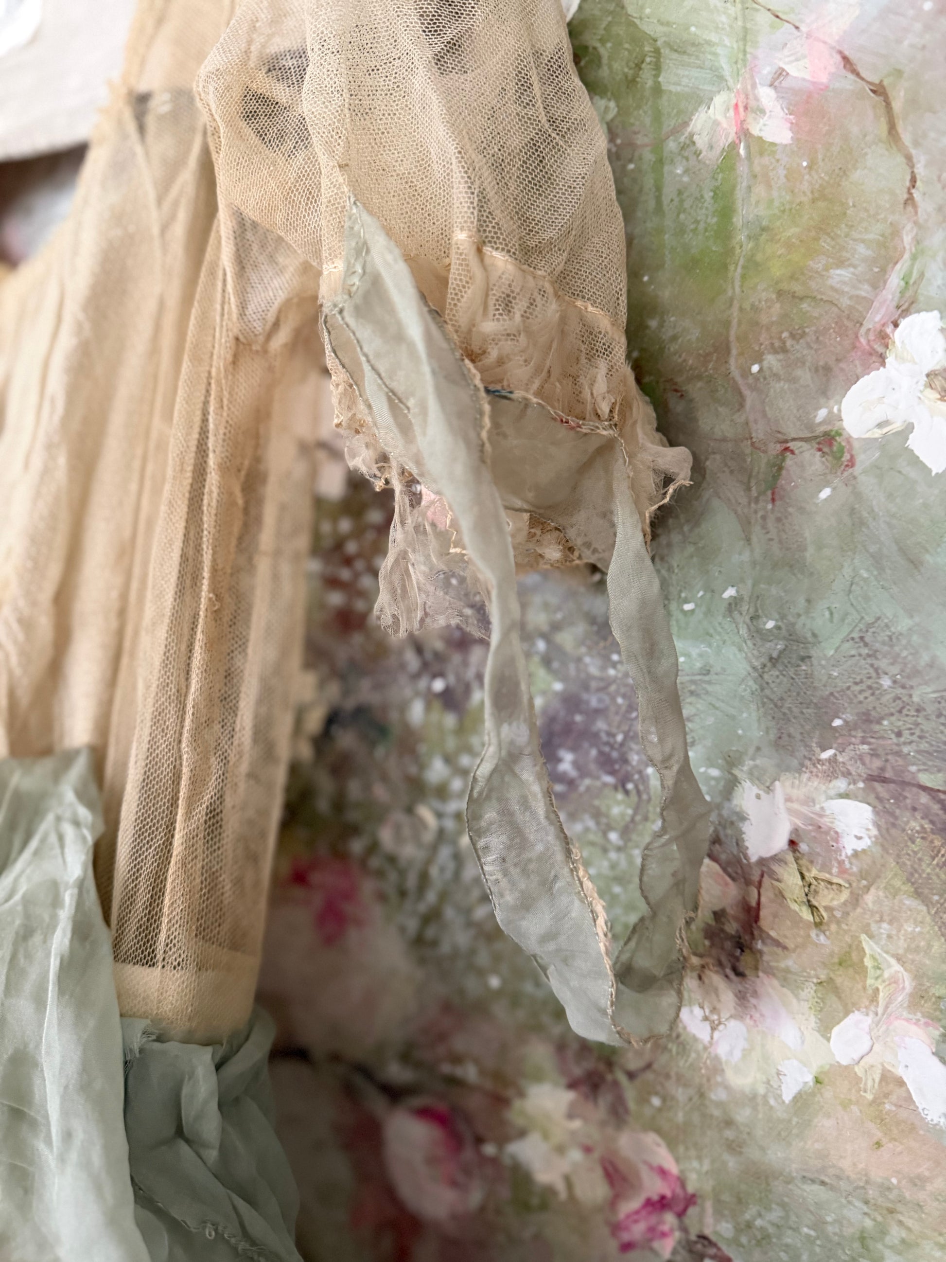 This piece is not without flaws, such as missing elements, small holes and shredding splits to the silk