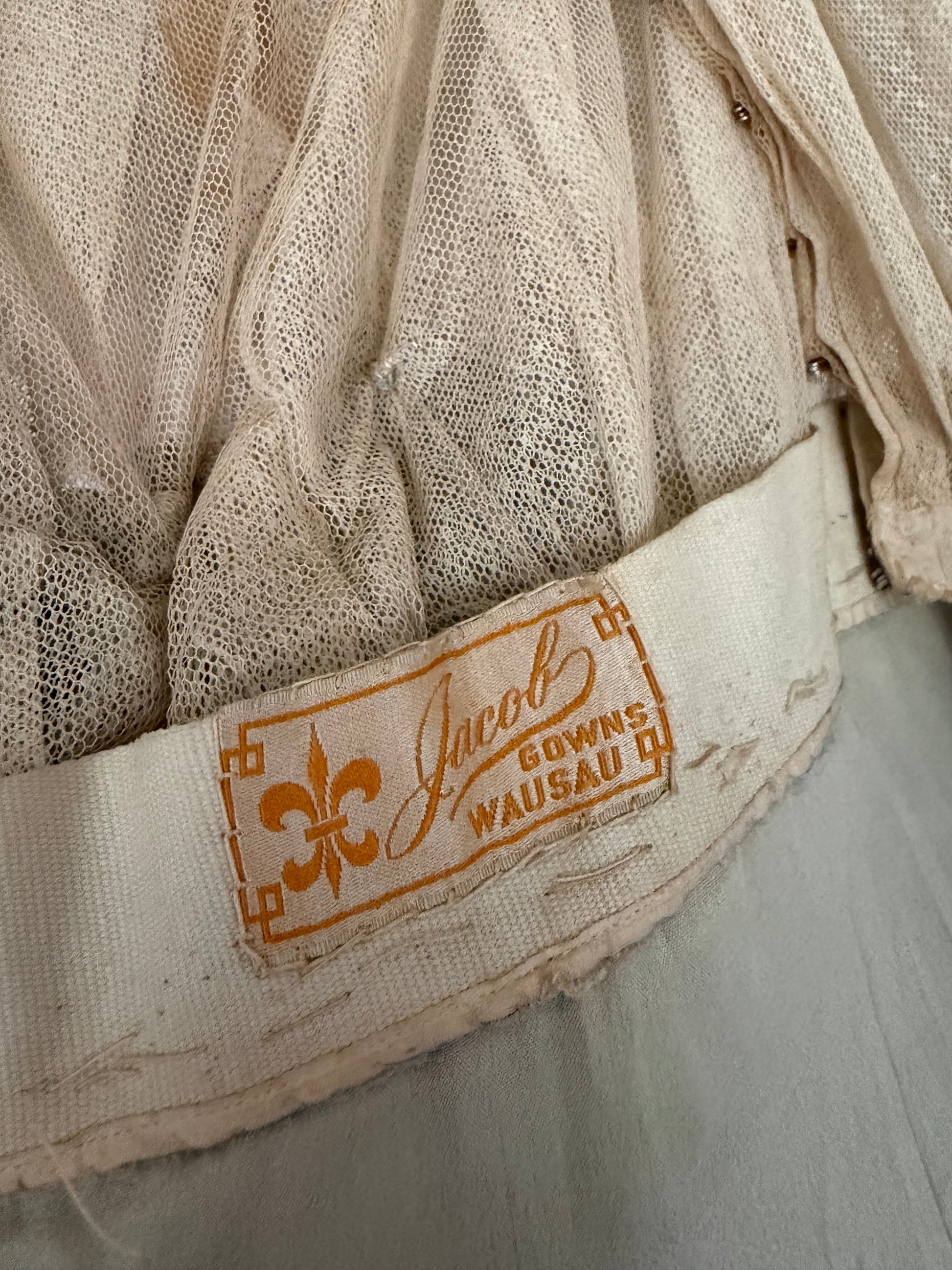 This is a gorgeous dress, with an ethereal lace top and a beautiful mermaid type fitted bottom with original makers tag