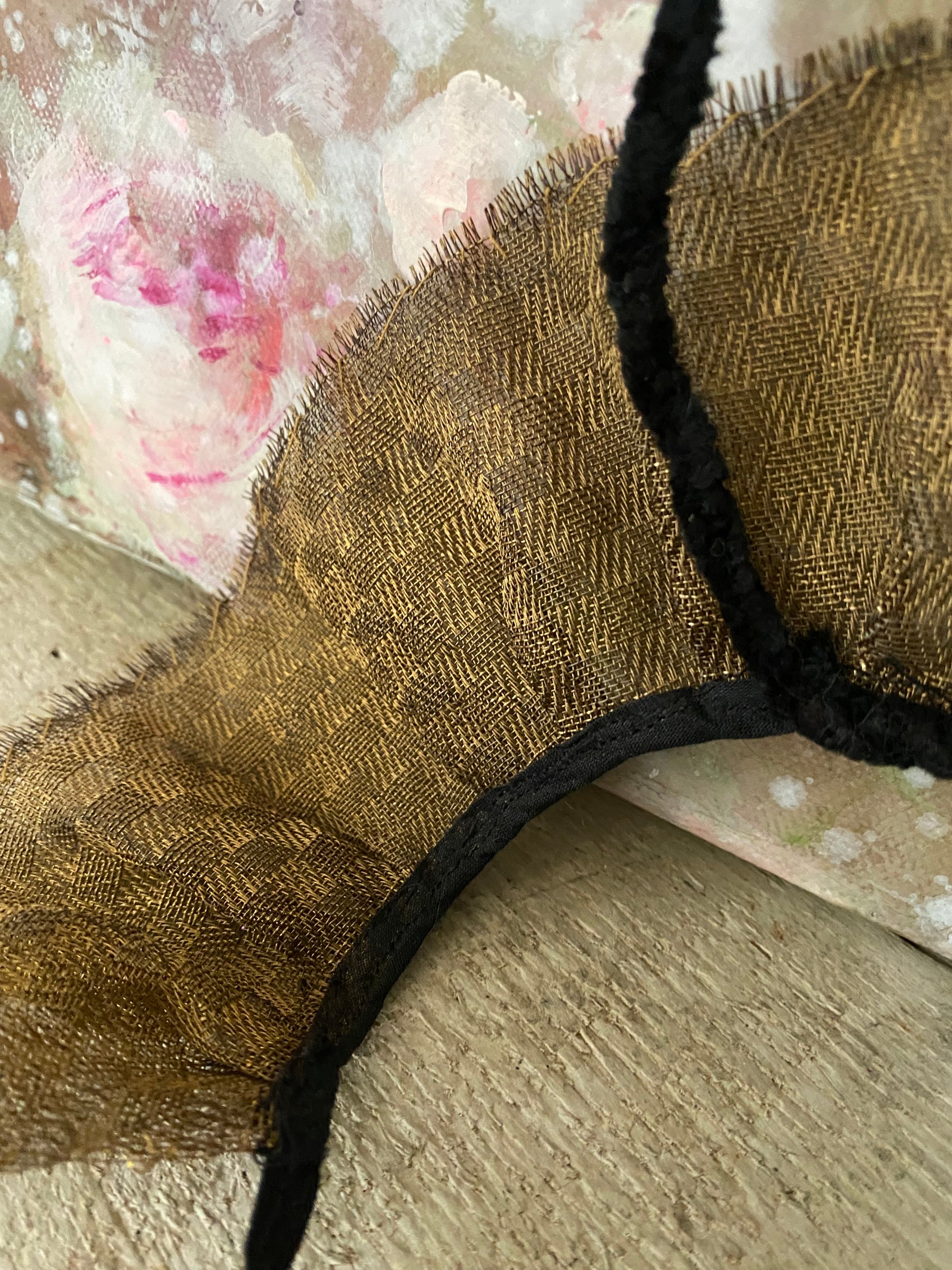 Textured metallic lame with a checker pattern and pipe clear antennas