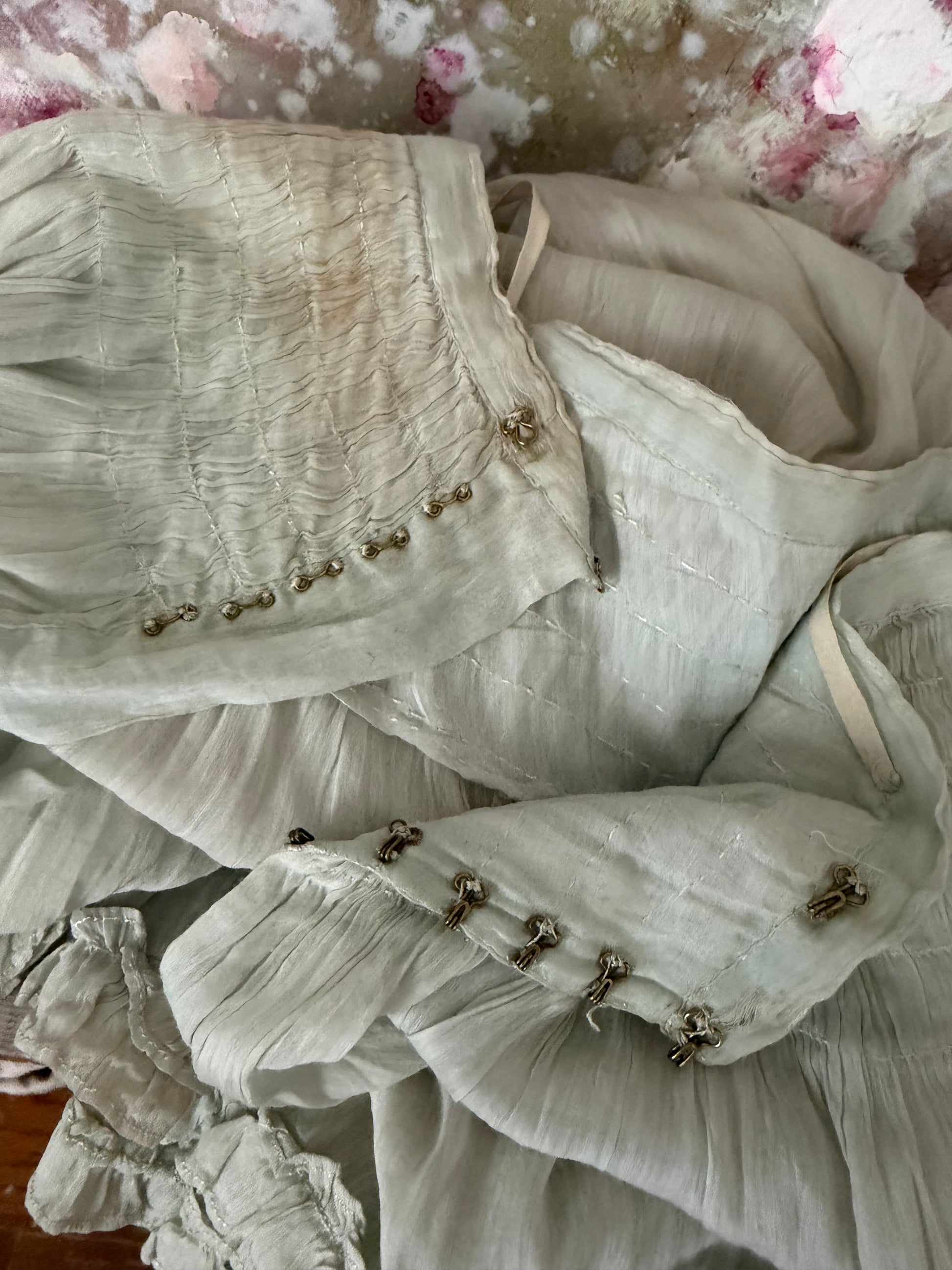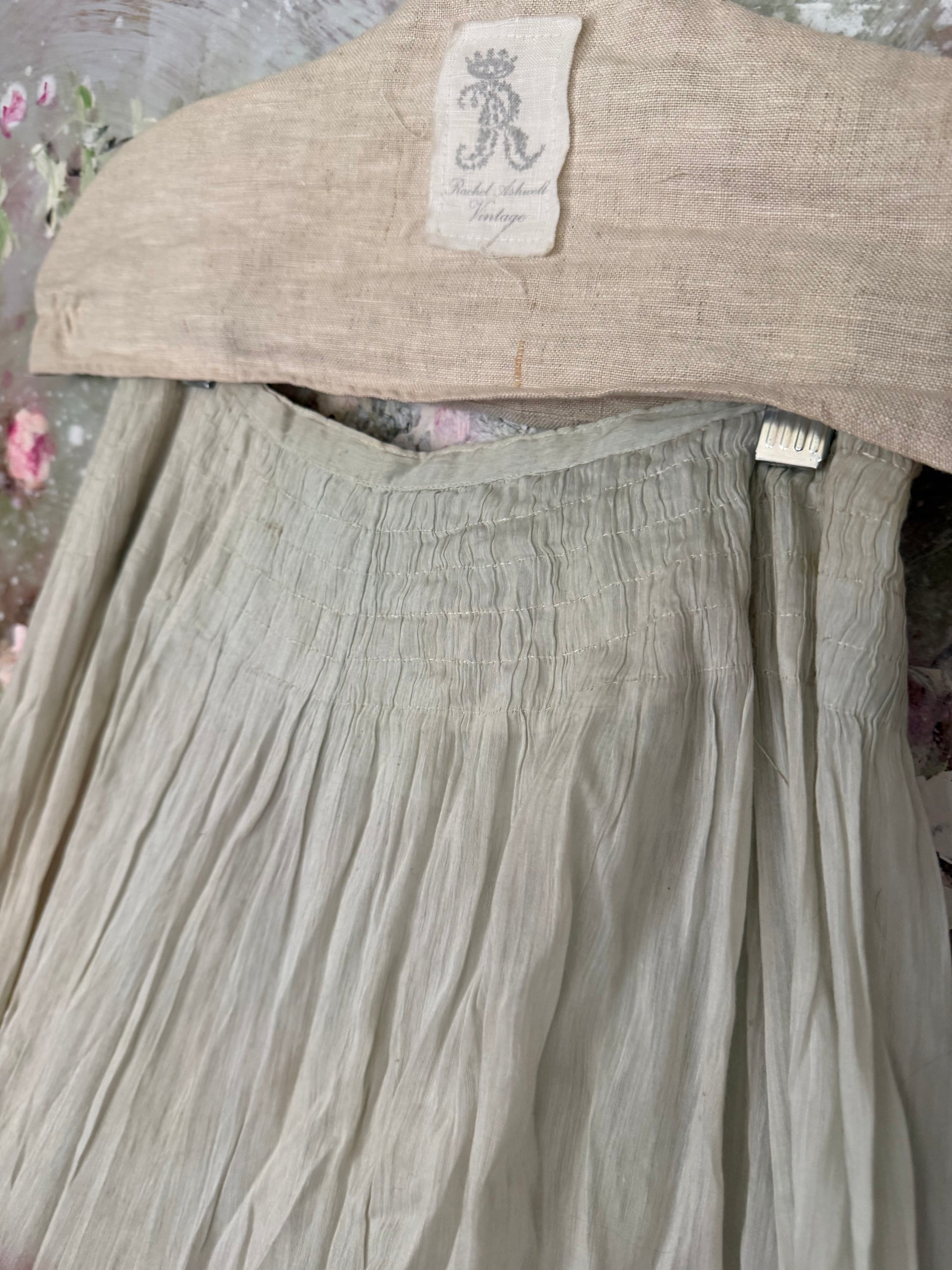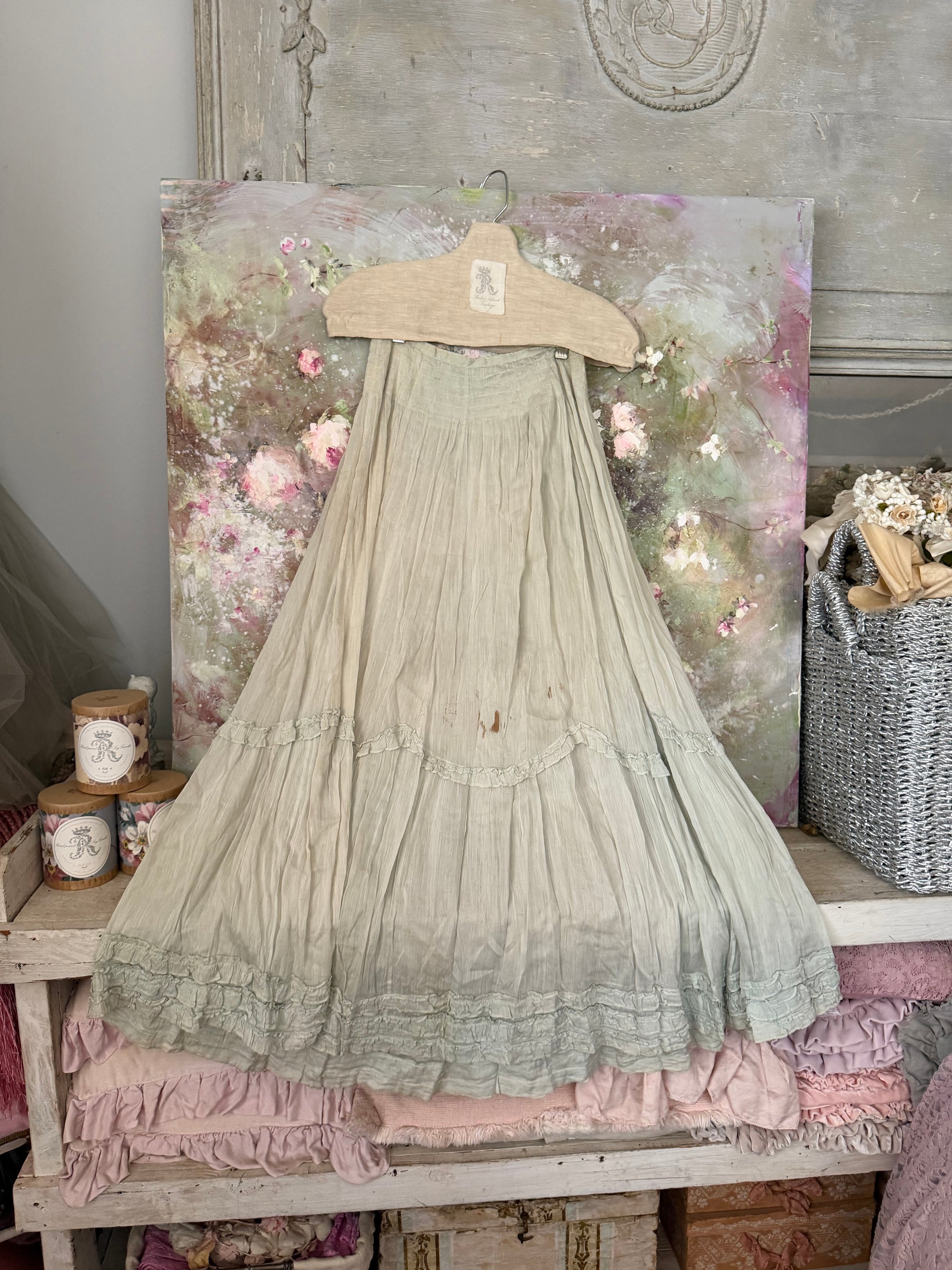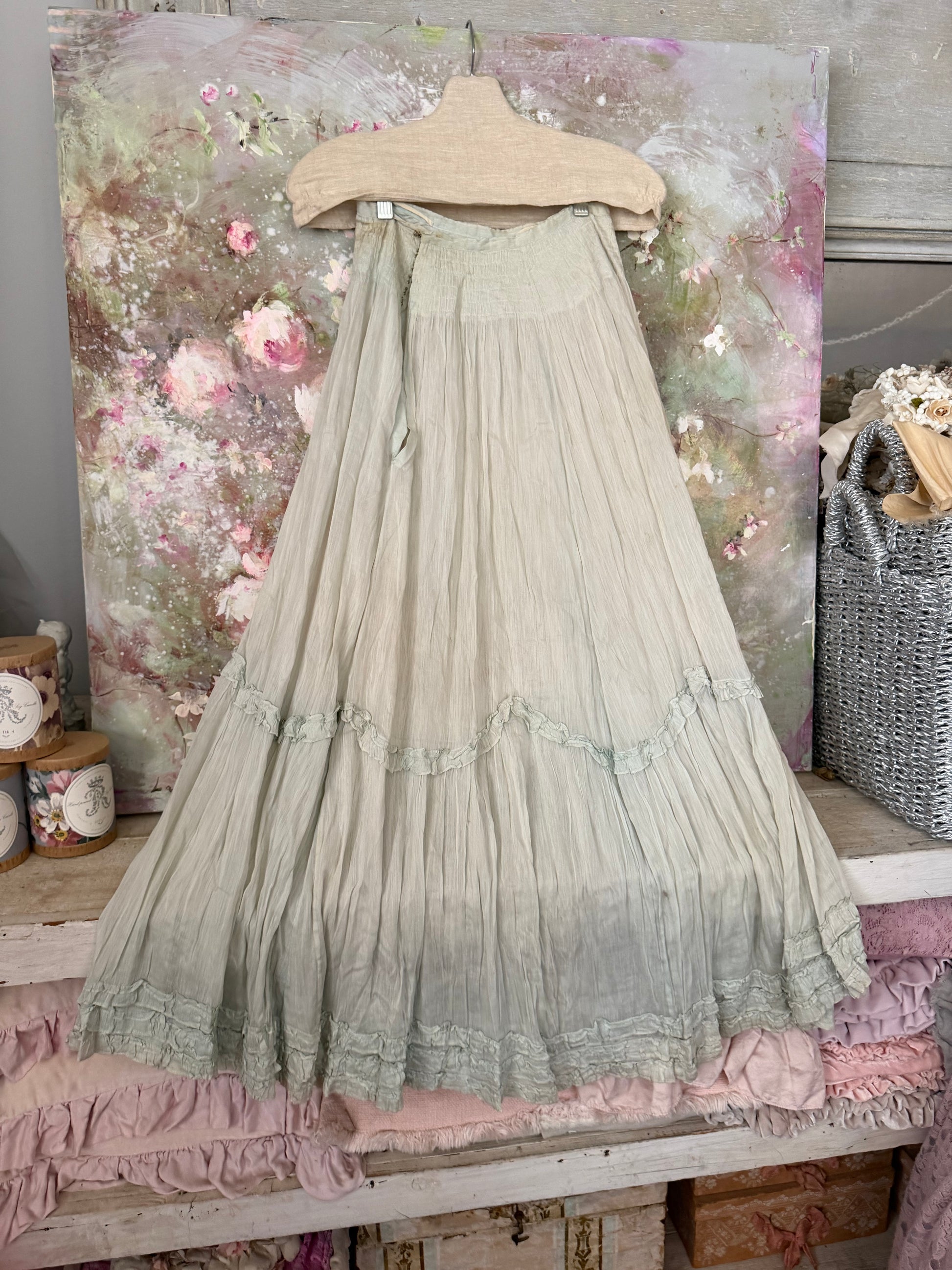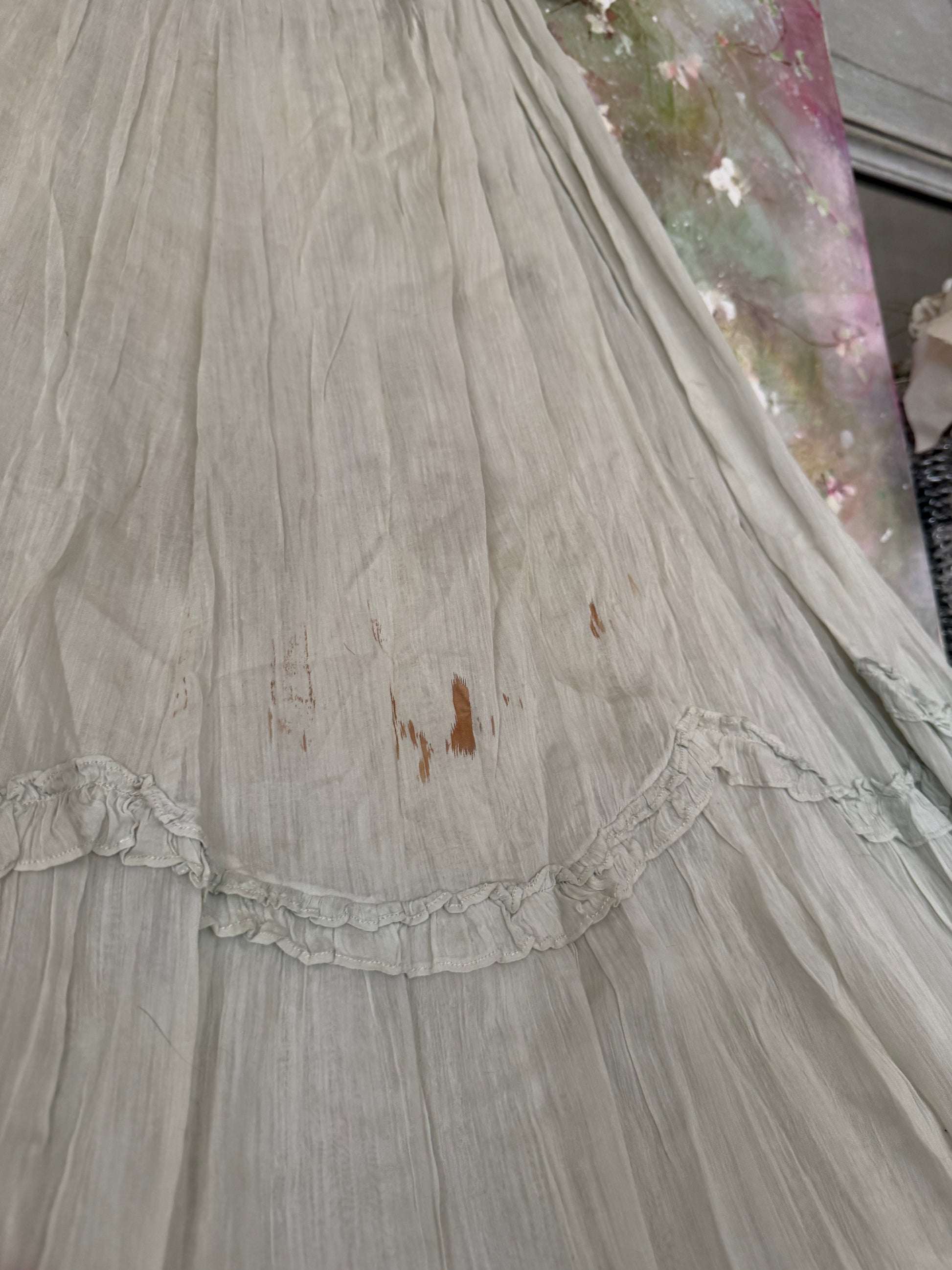 Antique Pale Blue Gauze Cotton Ruffled Hem Skirt