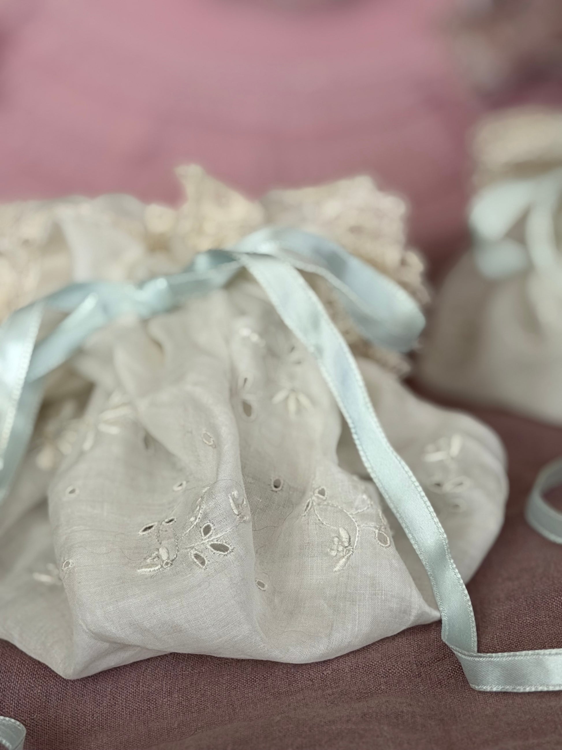 Lovely matching pair, lightweight lace and ribbon drawstring bags
