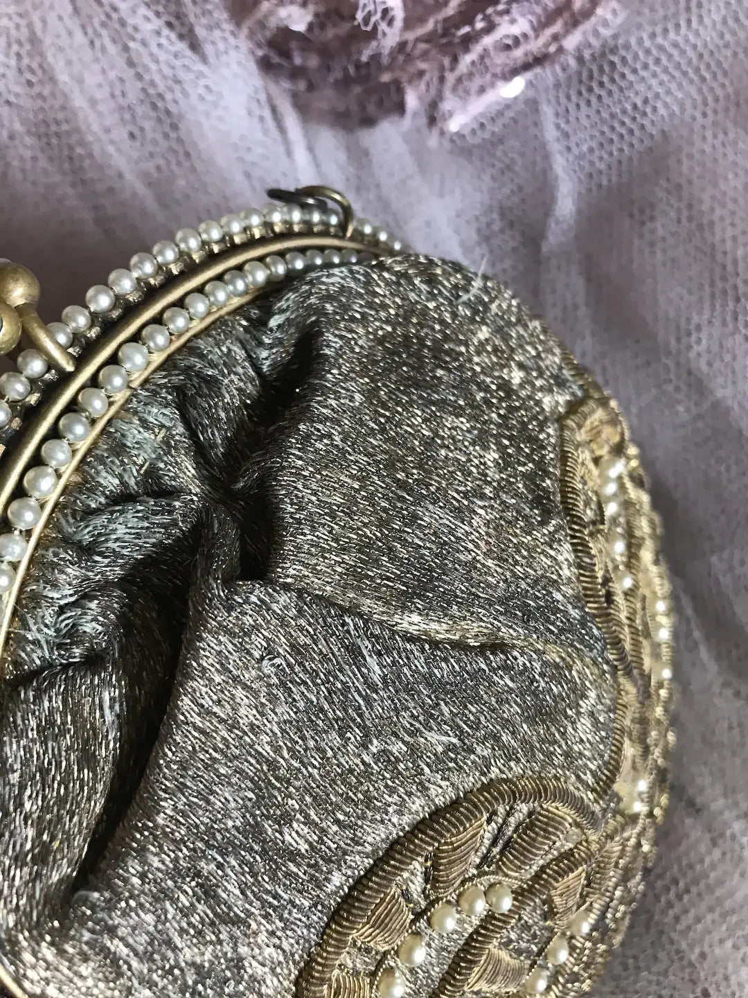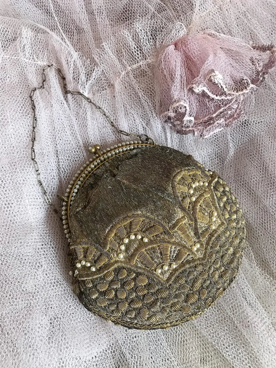 Antique Flapper Purse Gold Bullion Lamé Pearl Encrusted Frame