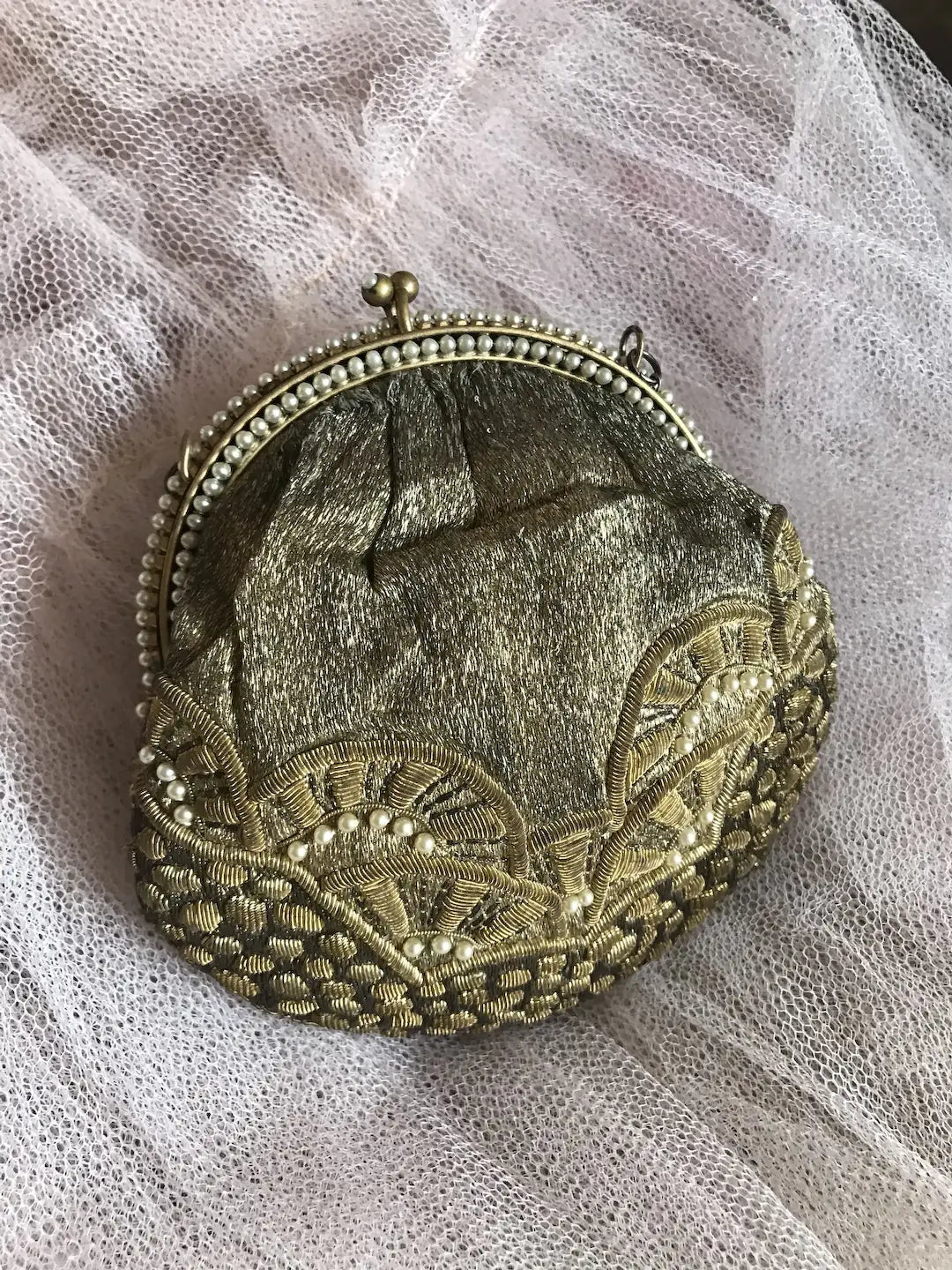 Antique Flapper Purse Gold Lamé Pearl Encrusted Frame