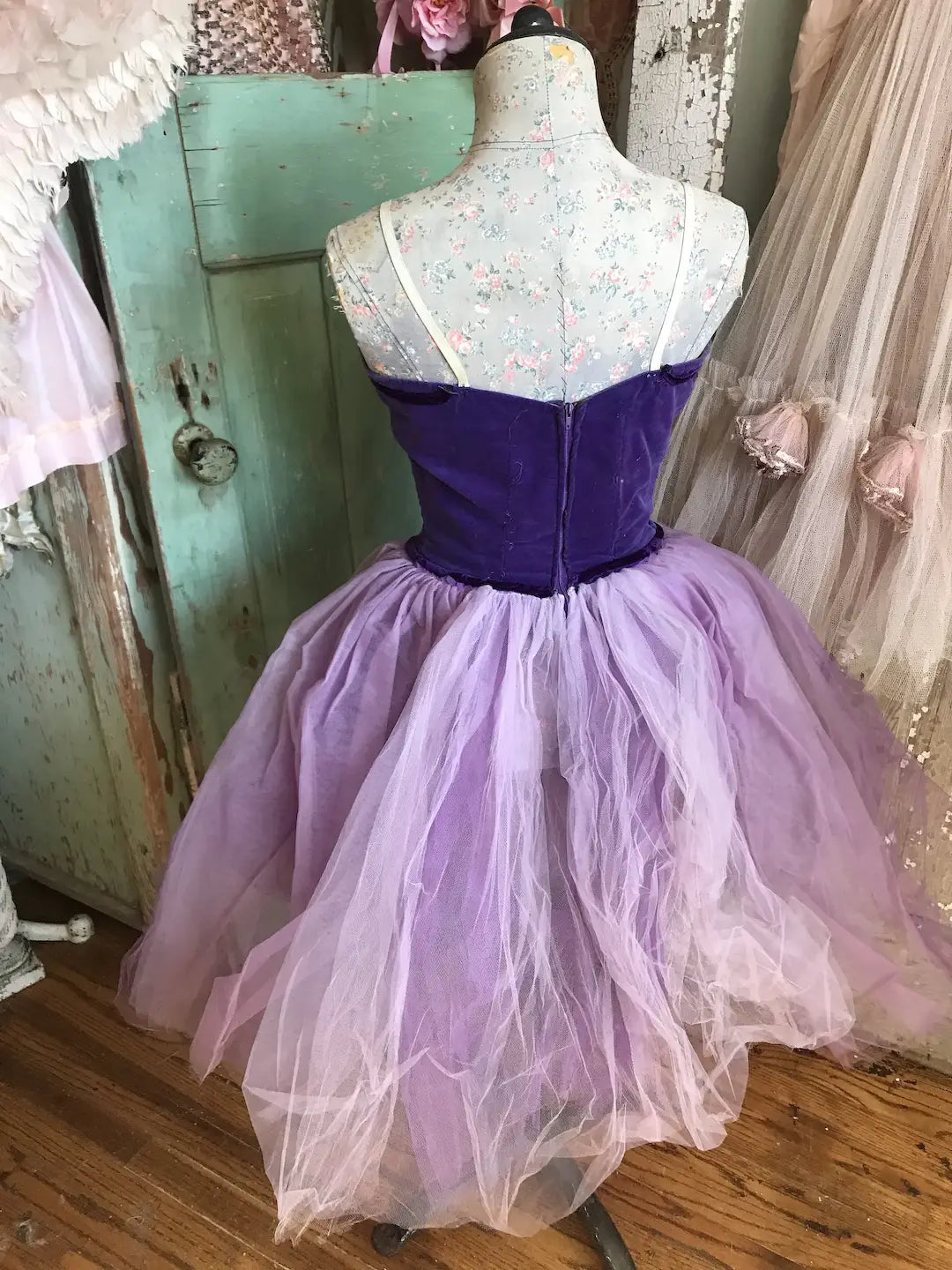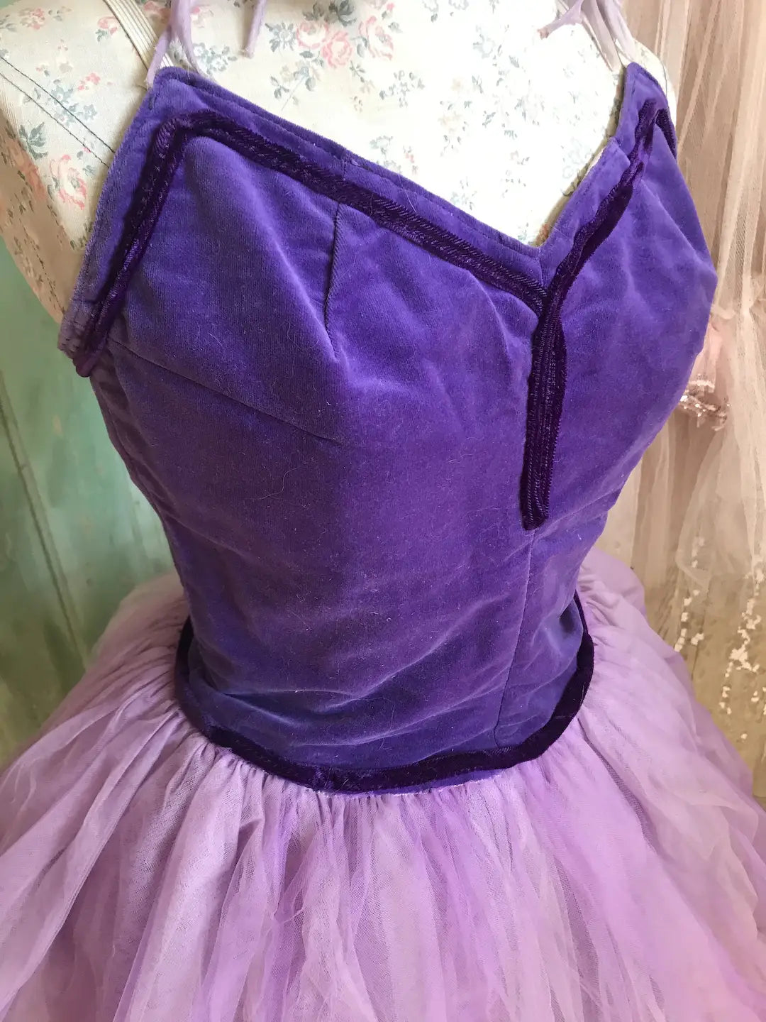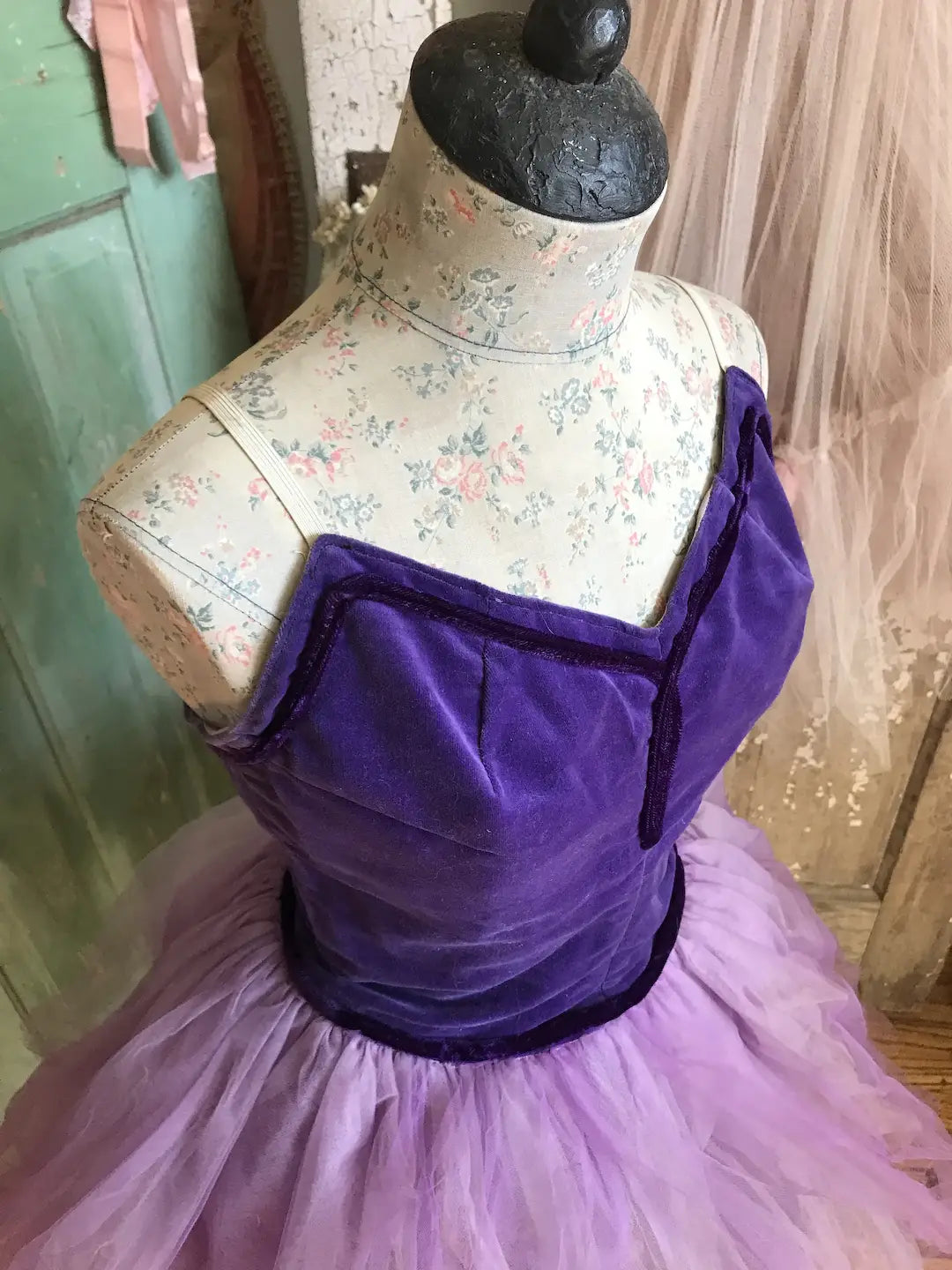 Vintage Ballet Tutu Costume Dress Purple Velvet Tulle Lace