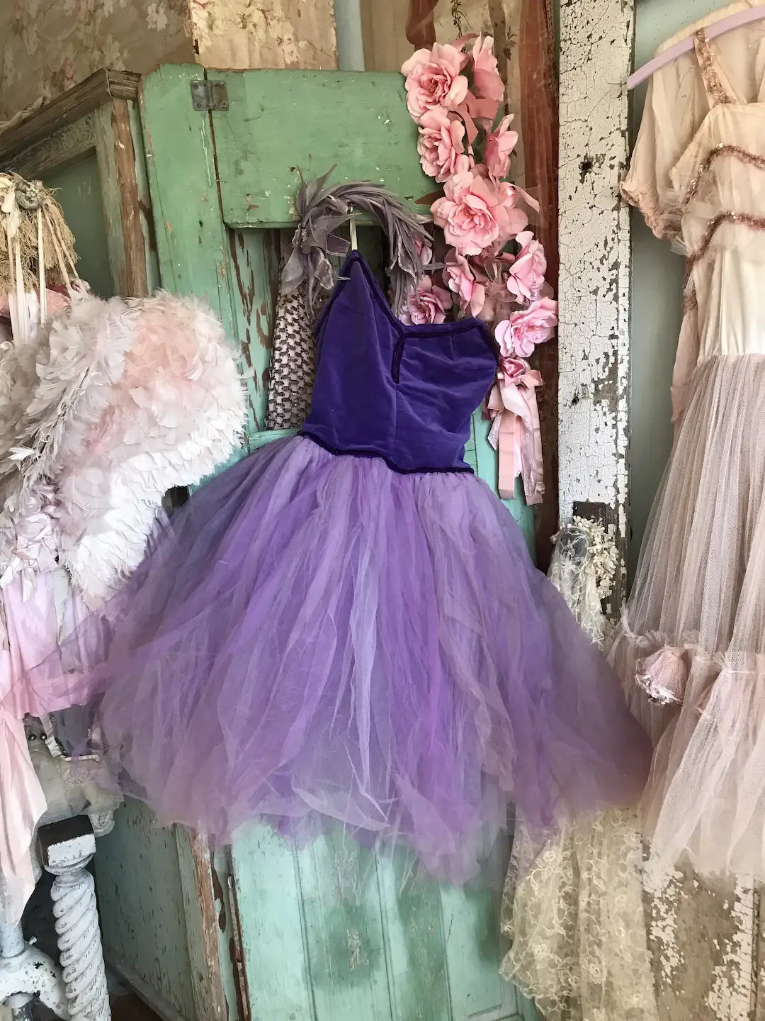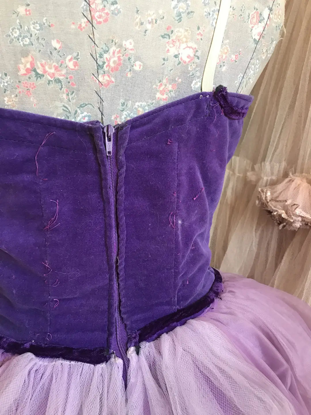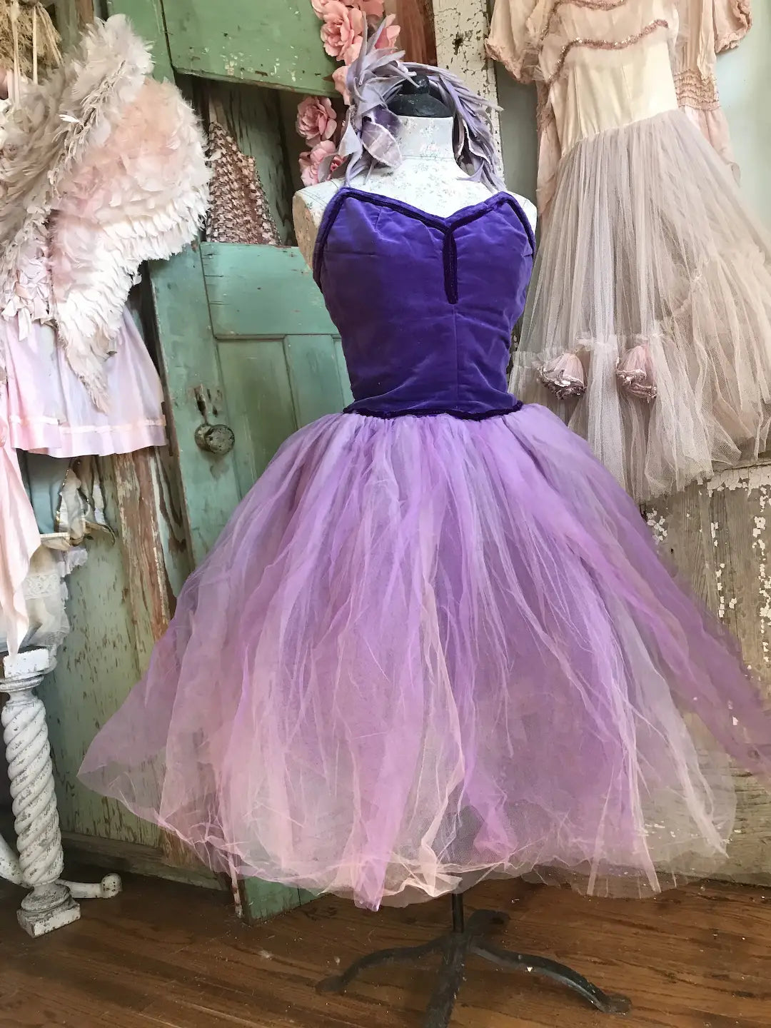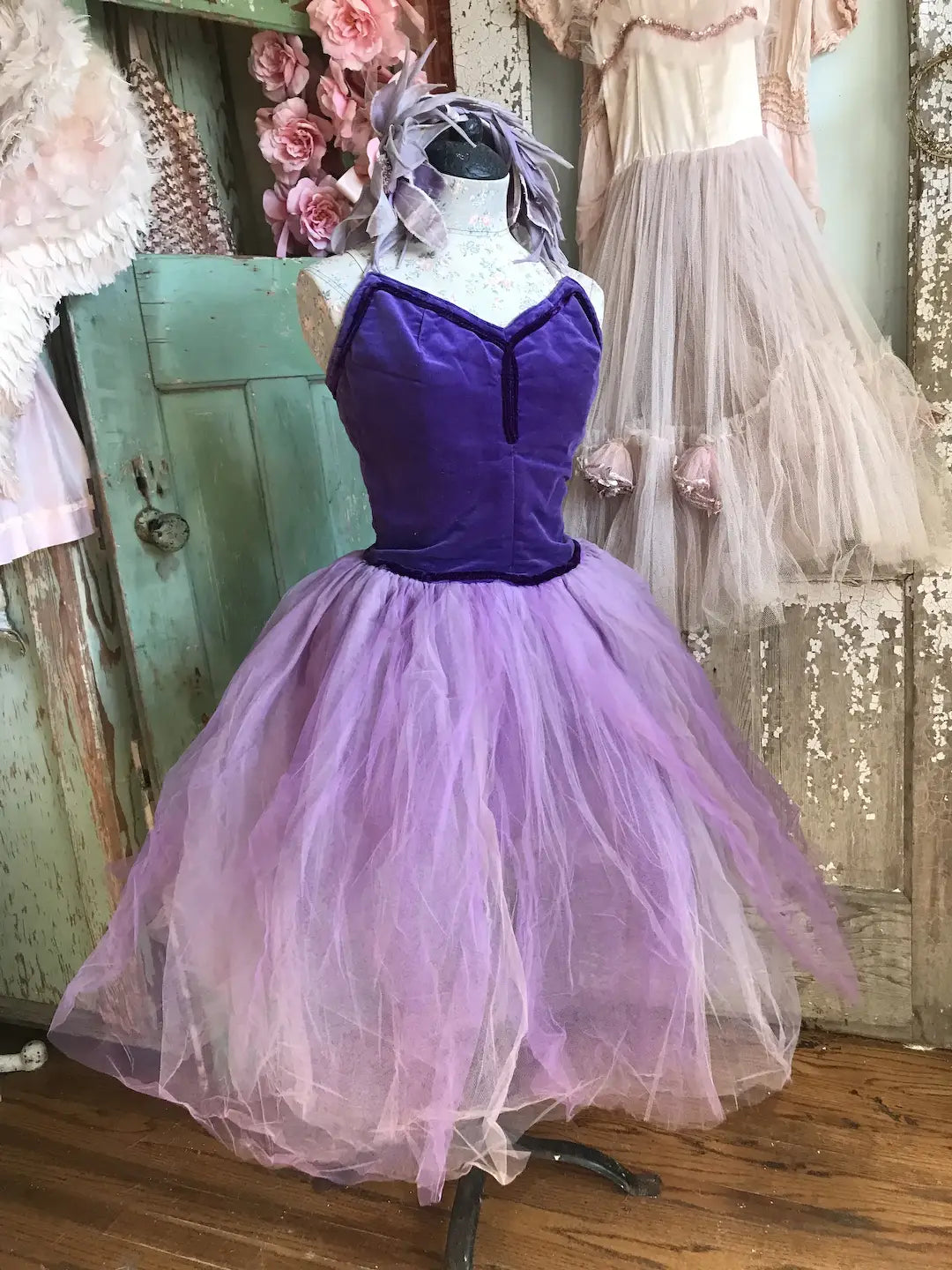 Vintage Ballet Tutu Costume Dress Purple Velvet Tulle Lace