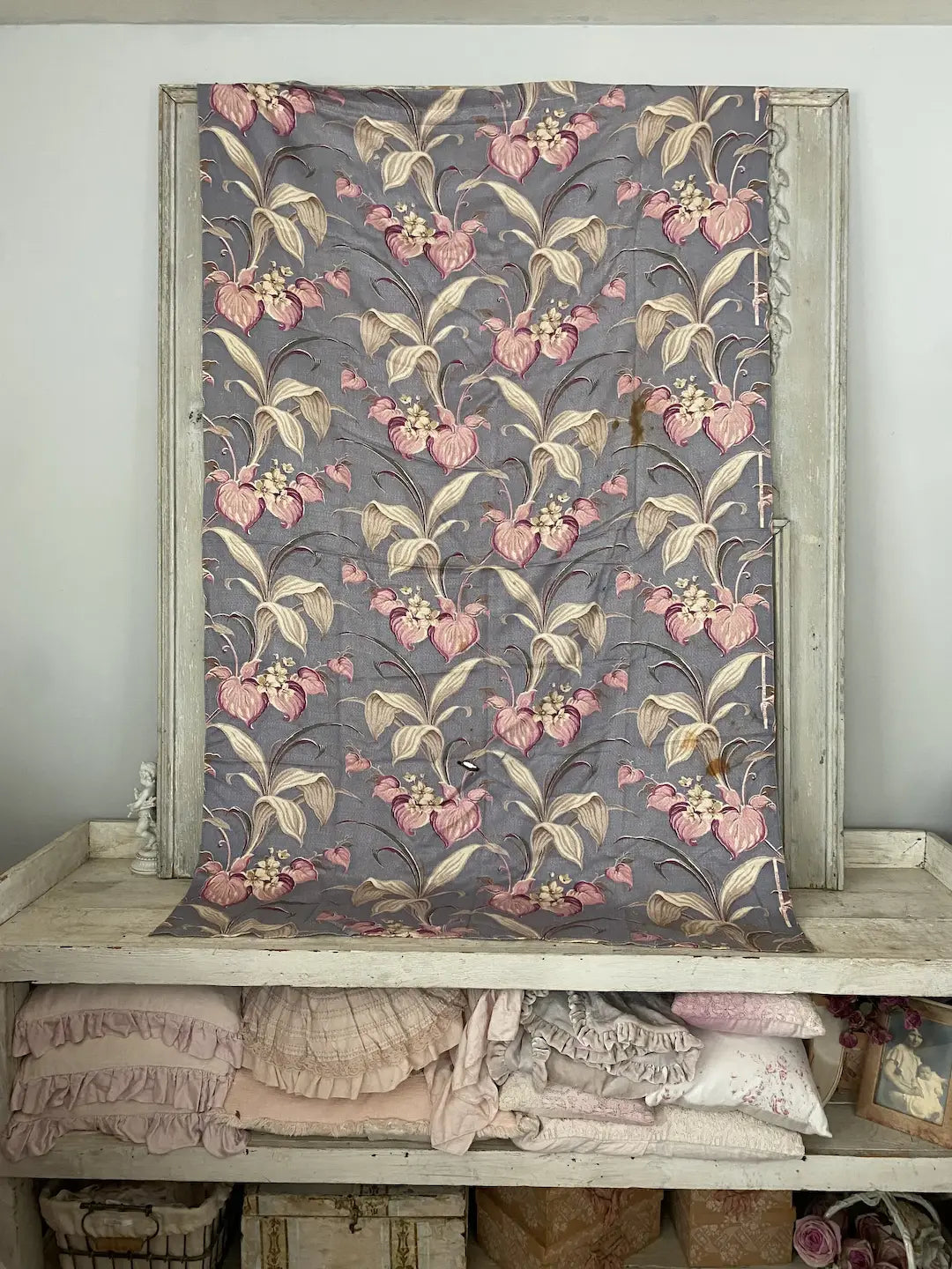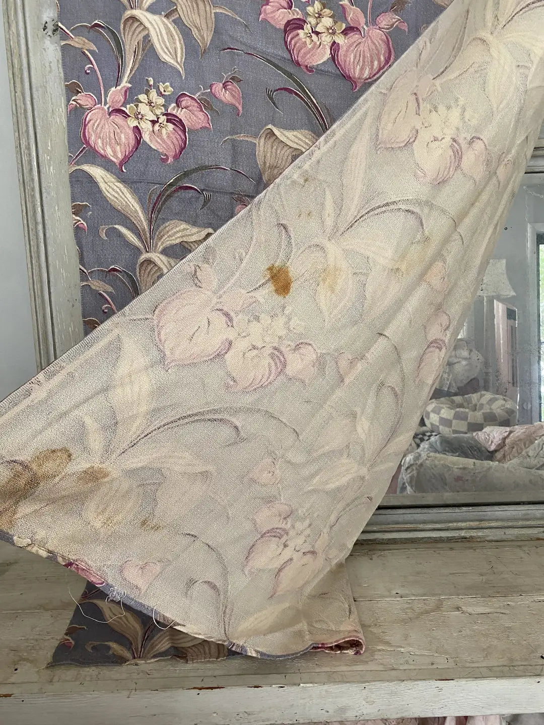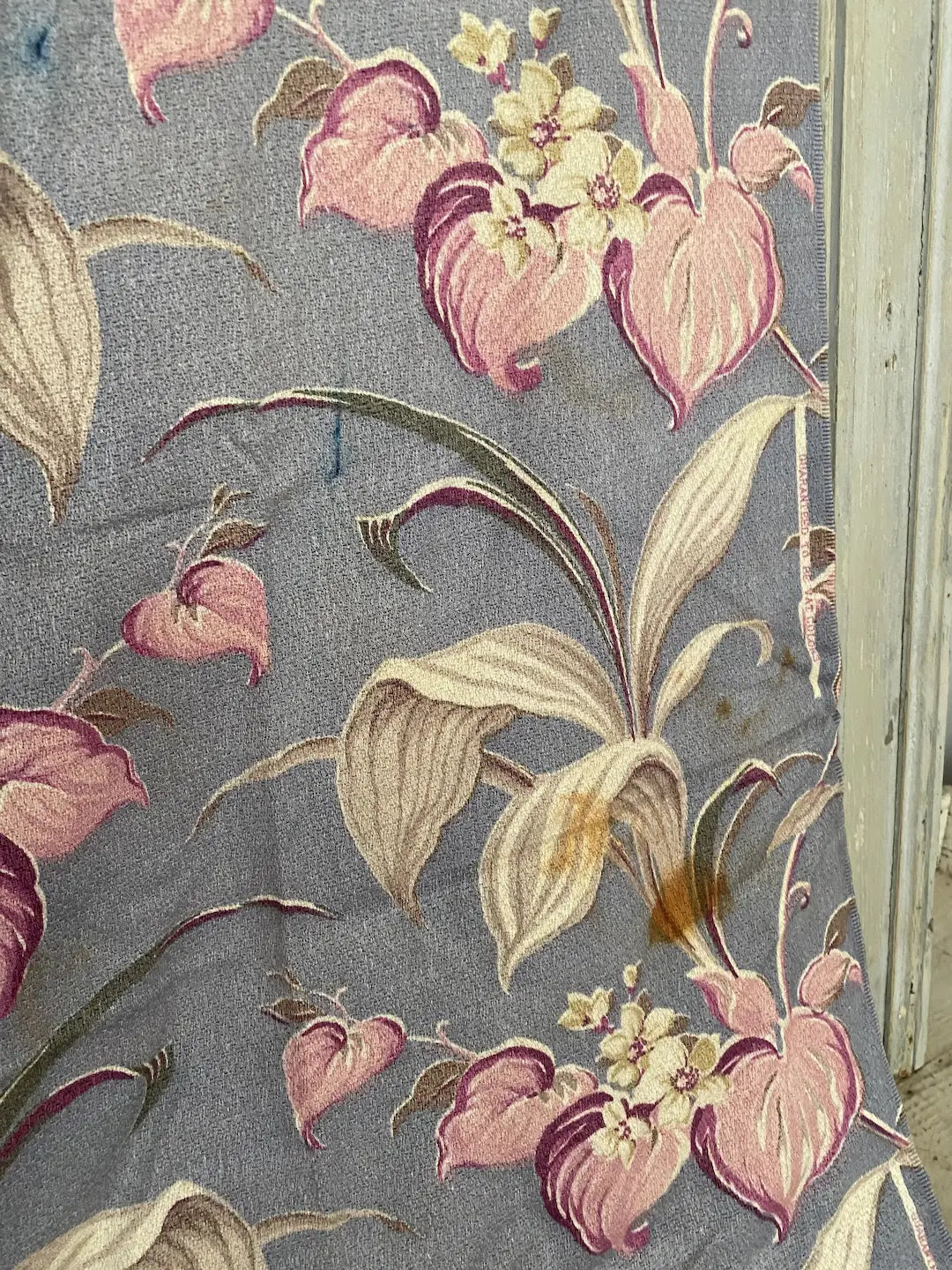 Vintage Blue Pink Tropical Shabby Chic Authentic Vintage Barkcloth Curtains Fabric Panel