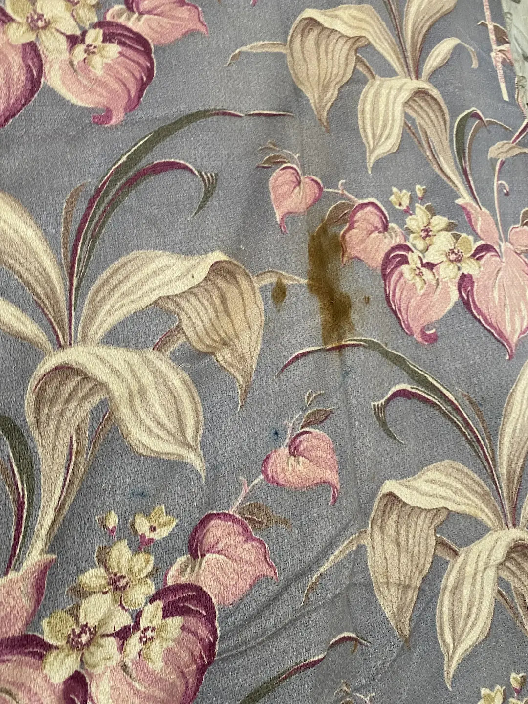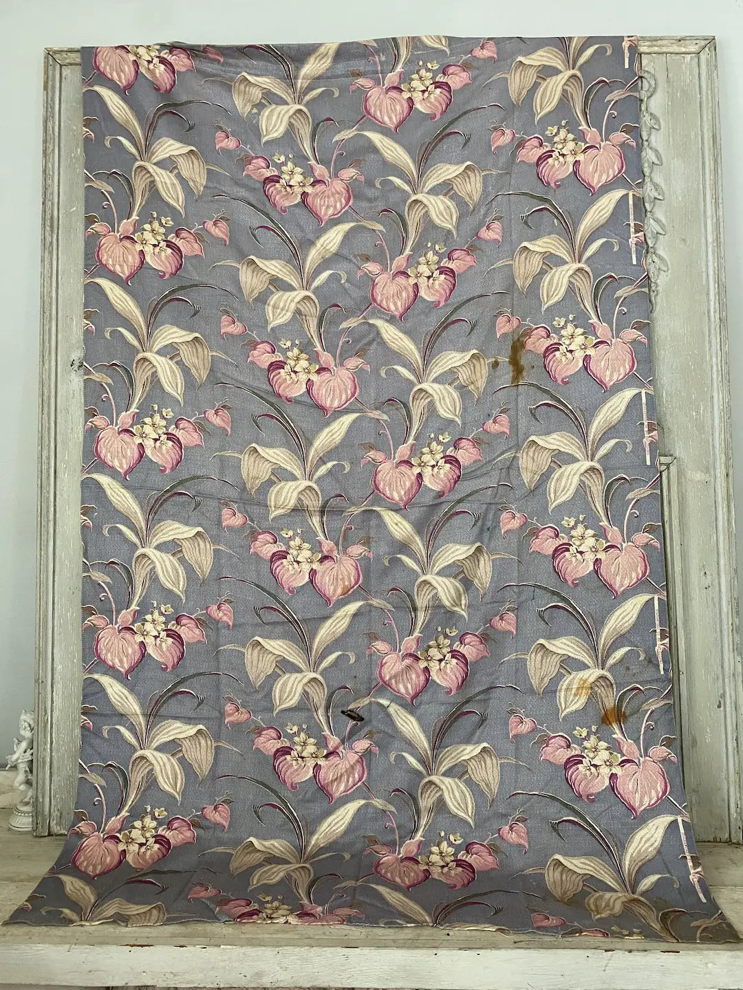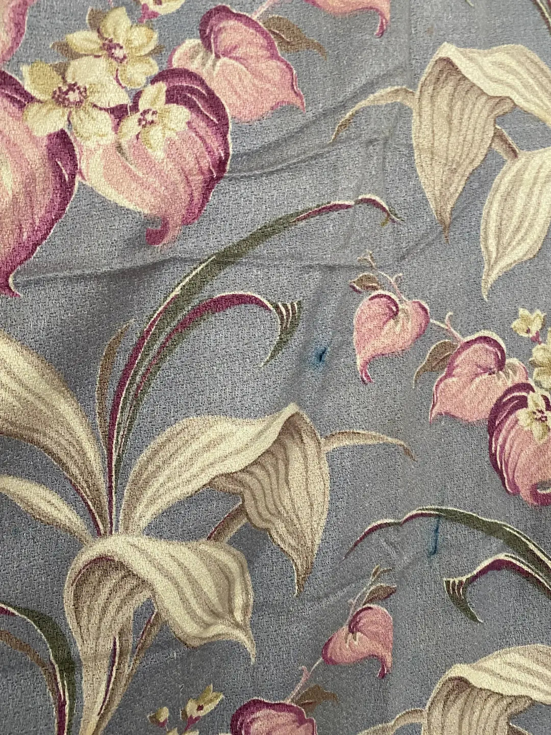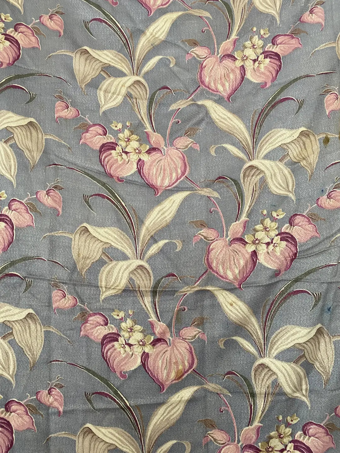 Vintage Blue Pink Tropical Shabby Chic Authentic Vintage Barkcloth Curtains Fabric Panel