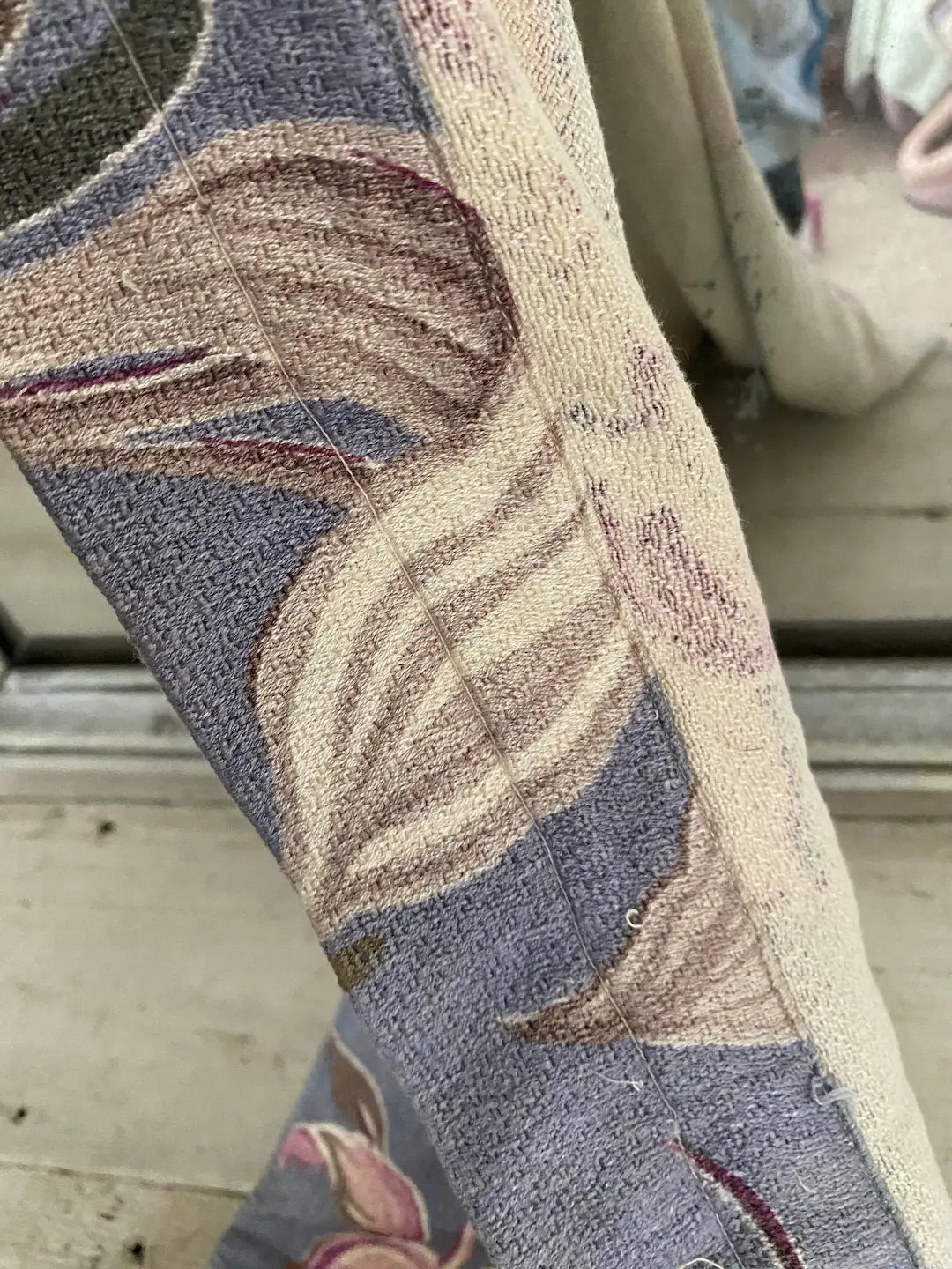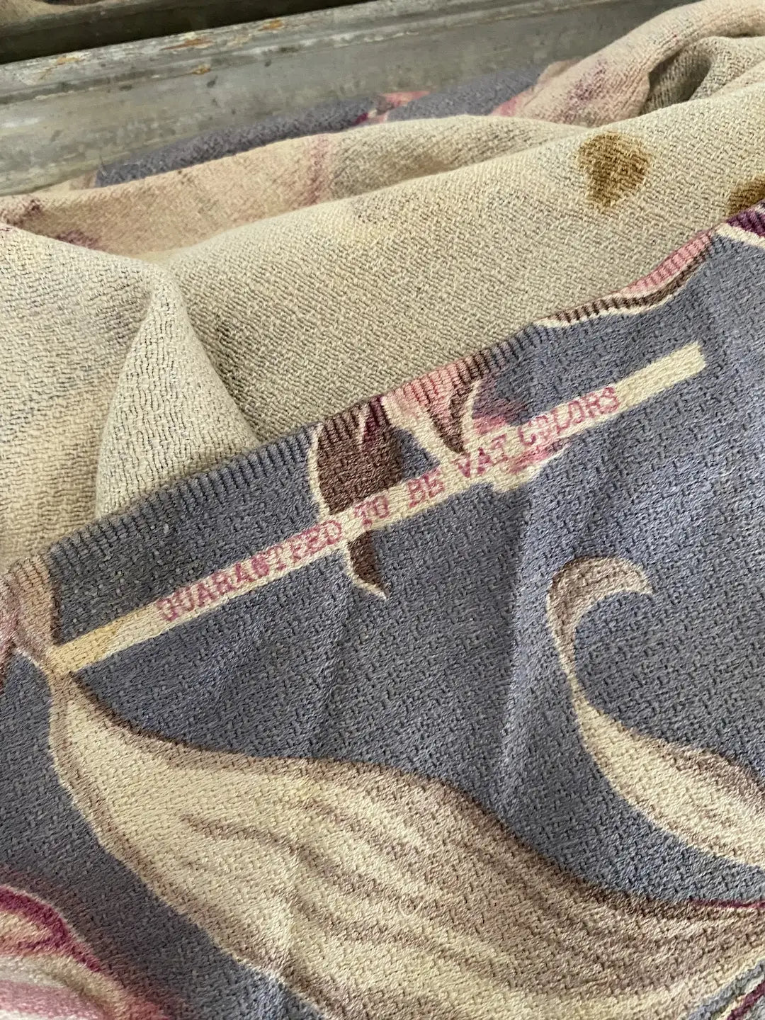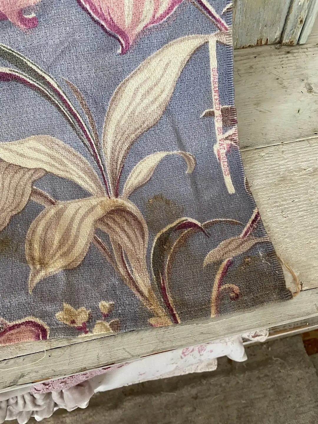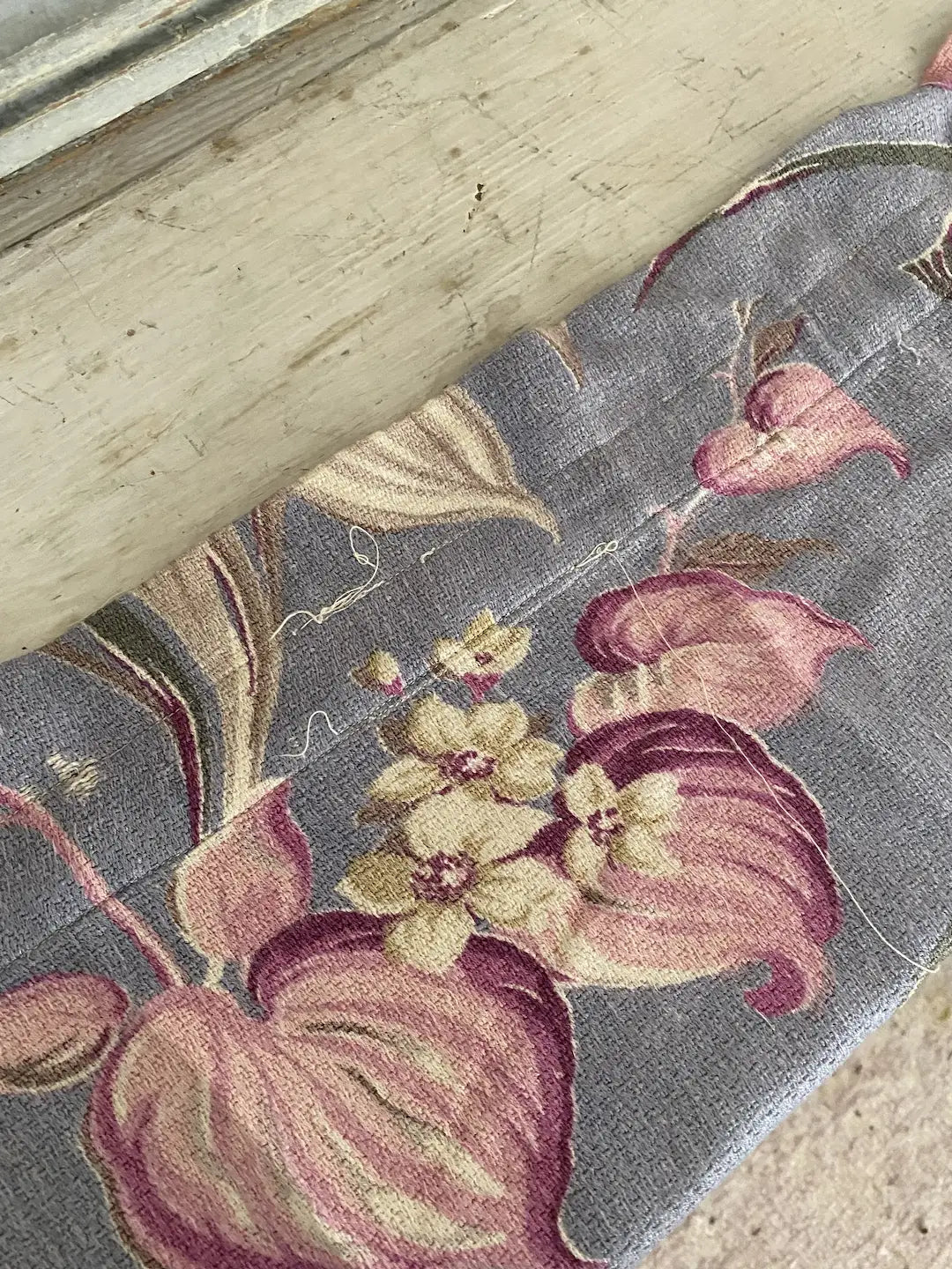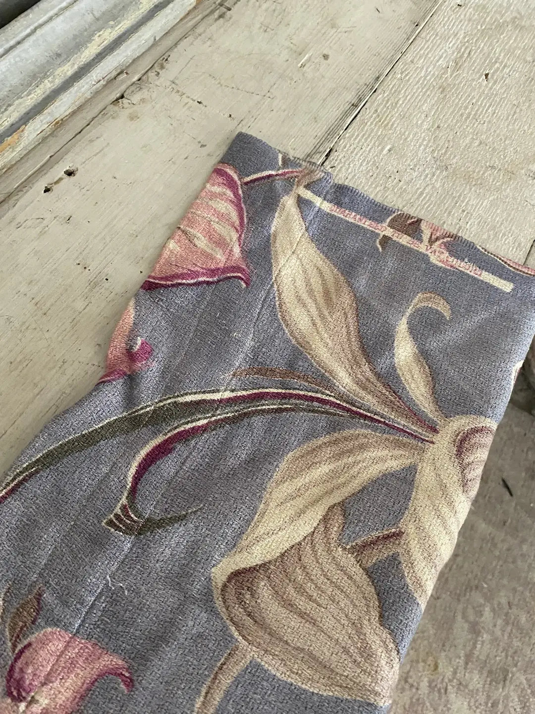 Vintage Blue Pink Shabby Chic Barkcloth Curtain Fabric Panel