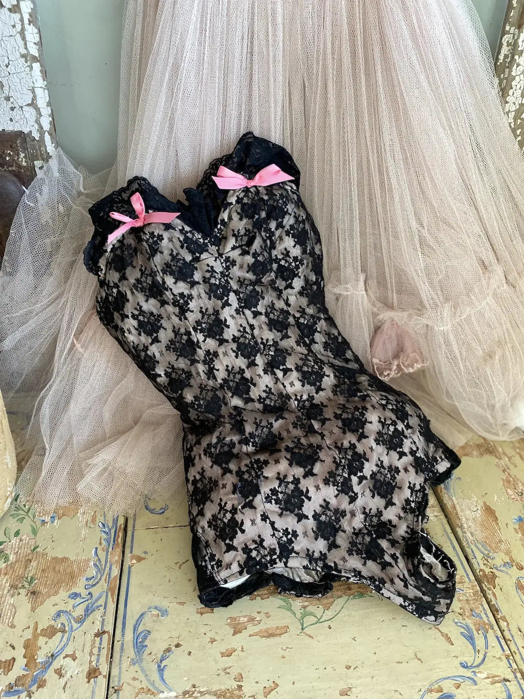 Vintage Burlesque Dance Costume Black Floral Lace One Piece Romper Pin Up
