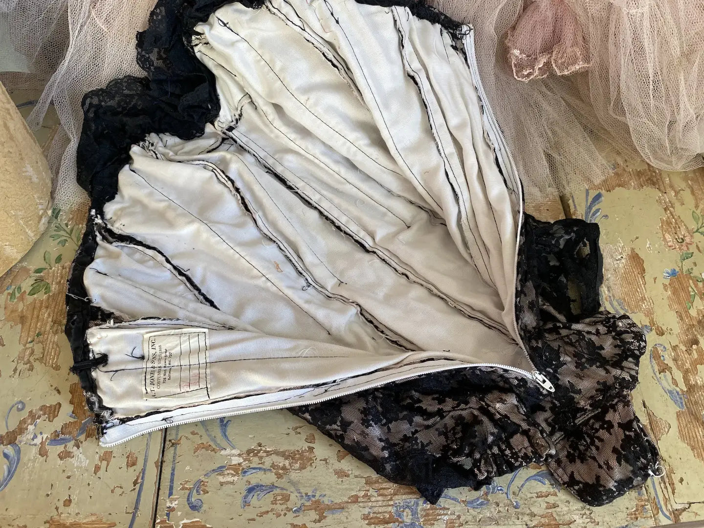 Surely worn in productions, and shows some wear, such as scattered rips to the lace, doesn't distract too much