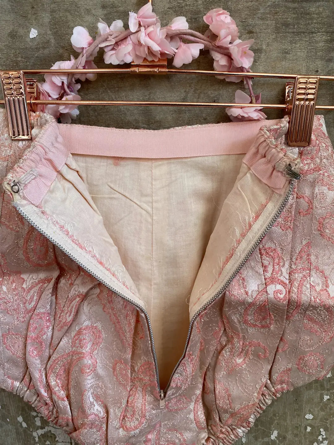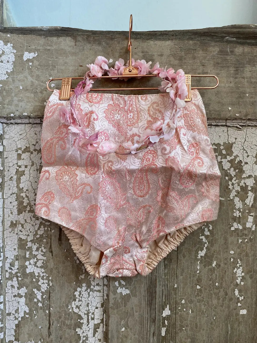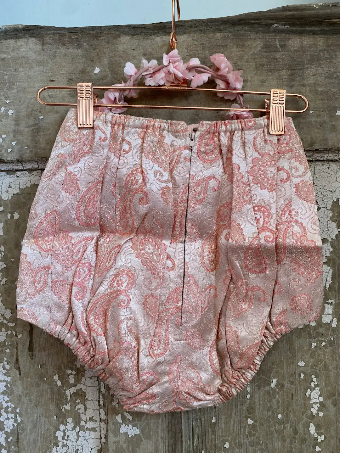 Vintage Dance Burlesque Costume Shorts Tap Pants Pink Shimmer Paisley